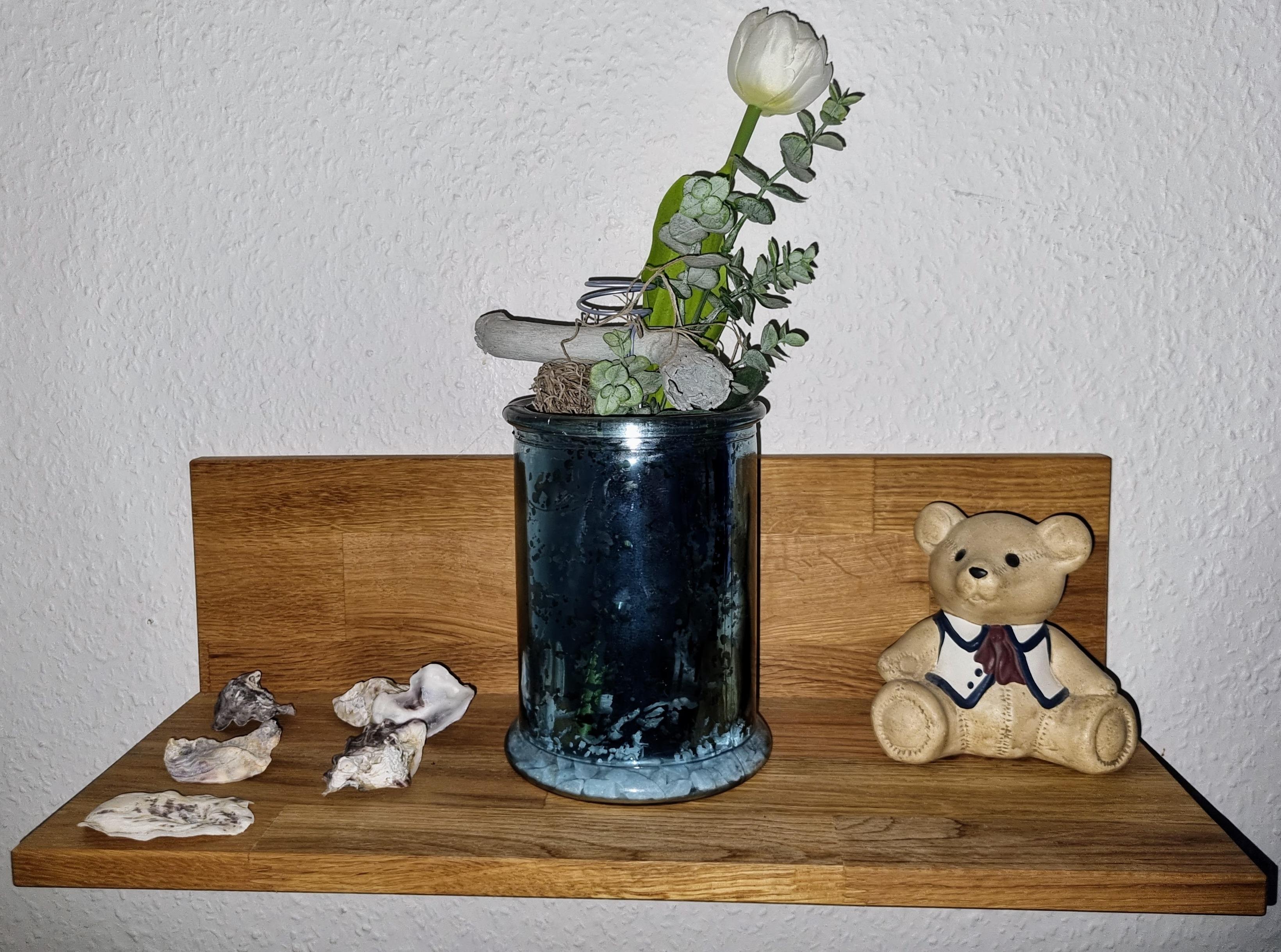 Die Wohnung im Erdgeschoss verfügt über ein Schlafzimmer, Wohn-/Küchenbereich, Bad, Flur und eigenen Zugang. Im Außenbereich sind eine Terrasse und ein PKW-Stellplatz.