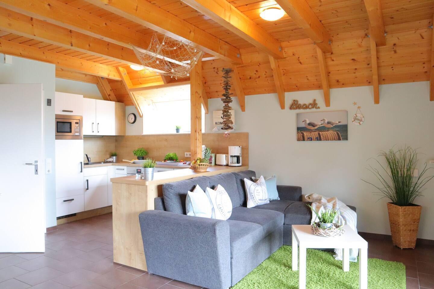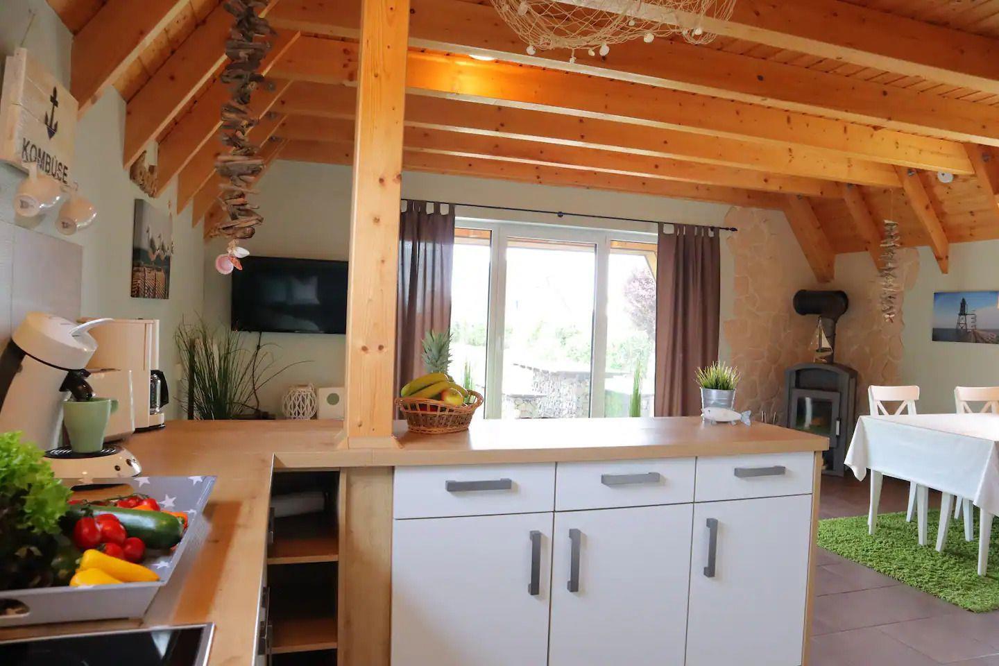 Das liebevoll eingerichtete Ferienhaus bietet auf seinen 68 qm² ausreichend Platz für 4 Personen. Die beiden Schlafräume, das Bad mit ebenerdiger Dusche, ein zusätzliches kleines Bad im Obergeschoss, eine komplett eingerichtete Einbauküche sowie der Wohn-/Essbereich mit Kamin laden zu einem erholsamen und komfortablem Urlaub ein. Das Ferienhaus verfügt zudem über einen schnellen Glasfaser-Internetanschluss mit kostenfreiem WLAN, 2 Flachbild-Fernsehern mit SKY-Programmen.