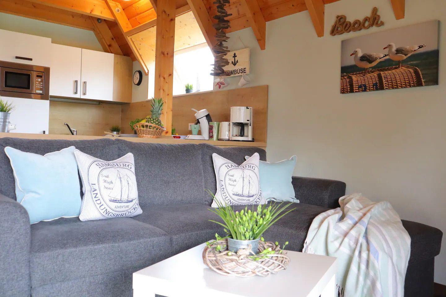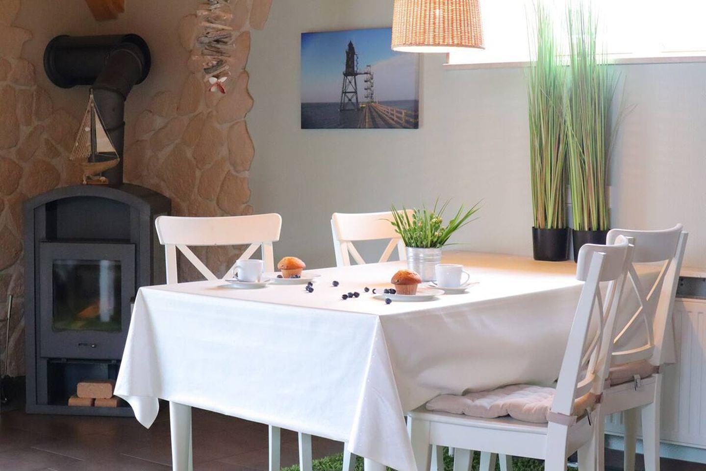 Gemütliches Ferienhaus Mellumplate 32 an der Nordseeküste mit Kamin und WLAN für entspannte Urlaubstage.
