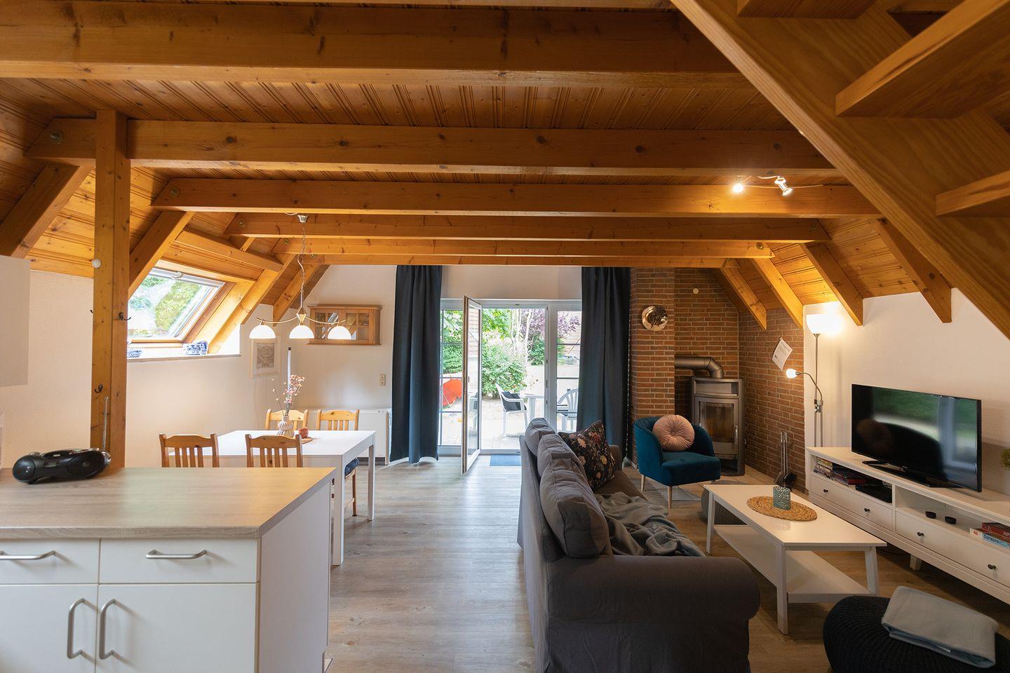 Ferienhaus Vogelsand 6 bietet familienfreundlichen Komfort, Garten, Kamin und Strandnähe an der Nordseeküste.