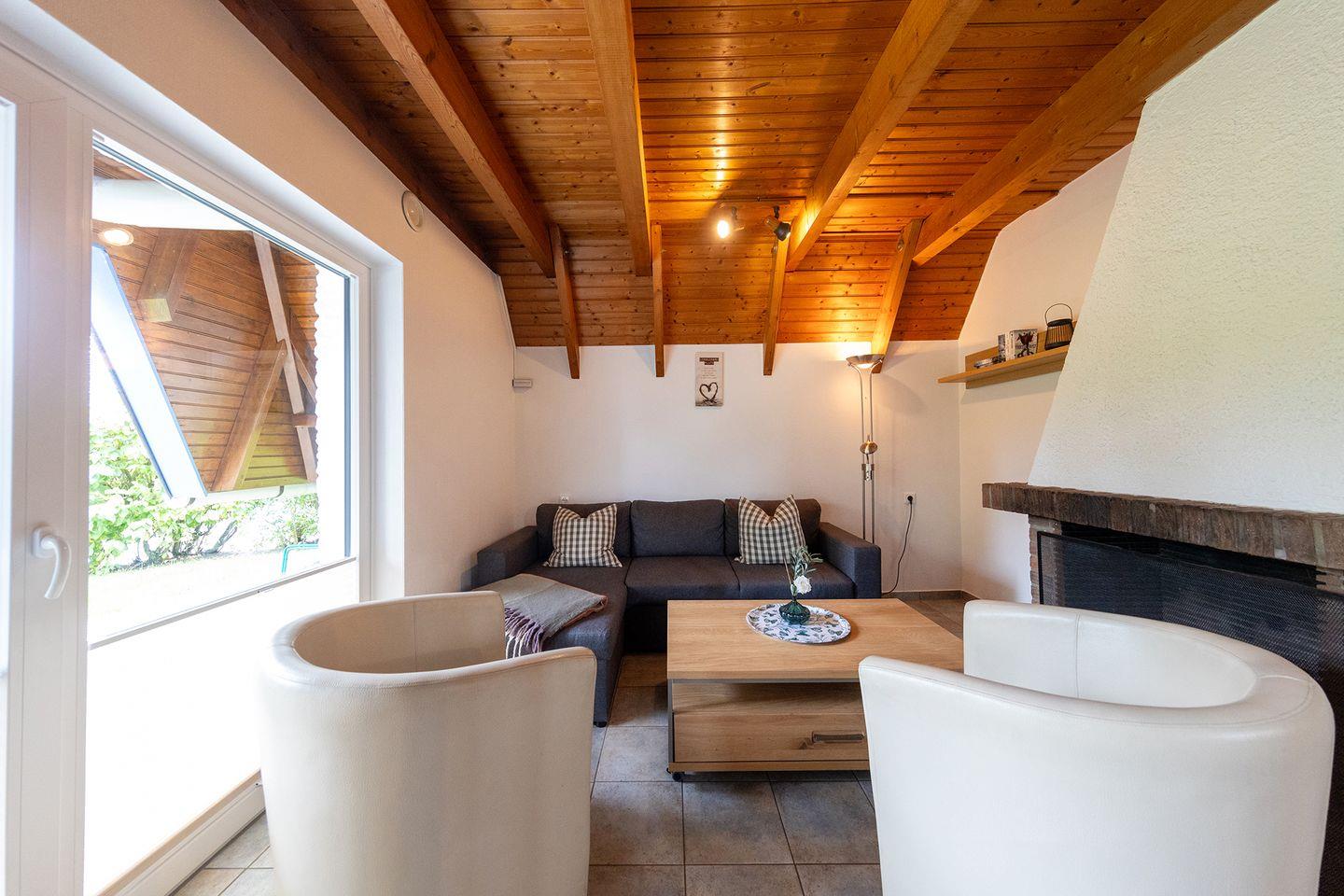 Drinnen warten rund 60?m² auf bis zu vier Personen. Zwei Schlafzimmer, ein heller Wohnbereich mit Küche und Kaminofen für kühle Abende und große Fenster mit Blick ins Grüne. Für deinen Komfort ist alles da, was den Urlaub unkompliziert macht: Spülmaschine, Waschmaschine, Trockner, WLAN.