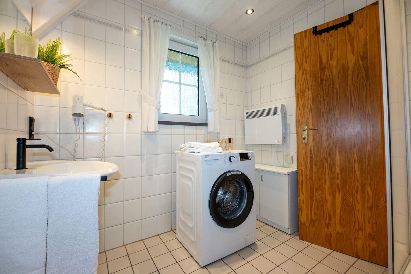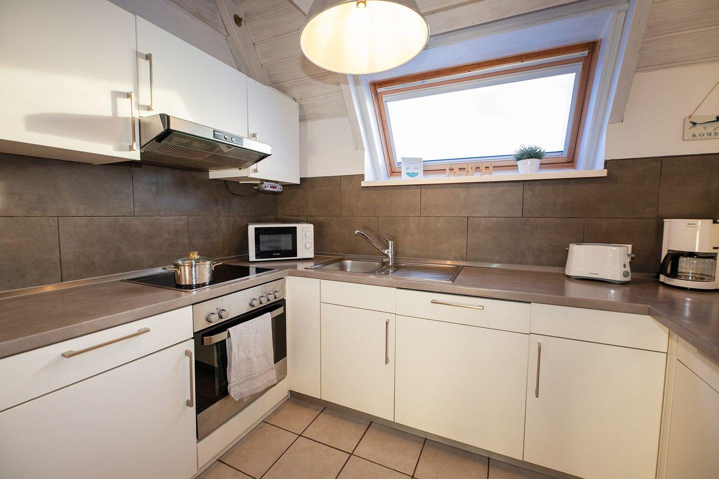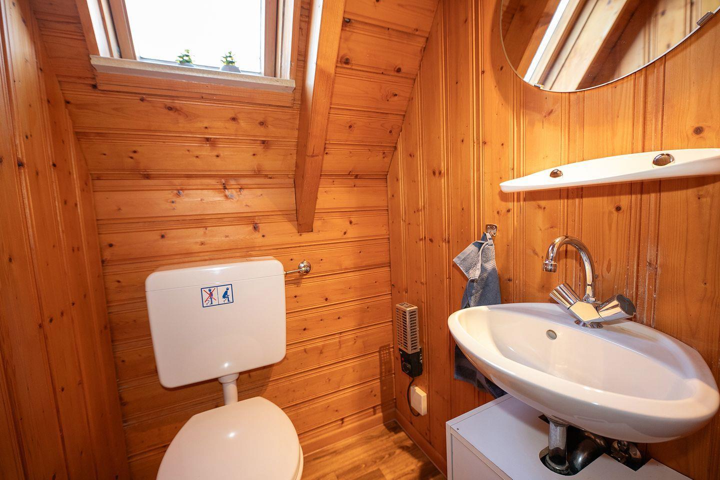 Zwei Schlafzimmer mit Teppichboden, ein gemütlicher Wohnbereich mit Kaminofen und eine komplett ausgestattete Küche sorgen für Komfort. Dazu kommen ein Bad mit Dusche und Wanne, ein Gäste-WC sowie Waschmaschine, Spiele, Kinderbett, Hochstuhl und Treppengitter – familienfreundlich und flexibel.