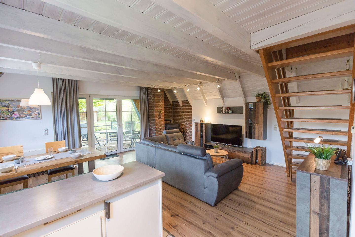 Ferienhaus Opi Huck Stroot 42 mit Garten und Strandnähe in Dorum-Neufeld, ideal für Familien und Haustiere.