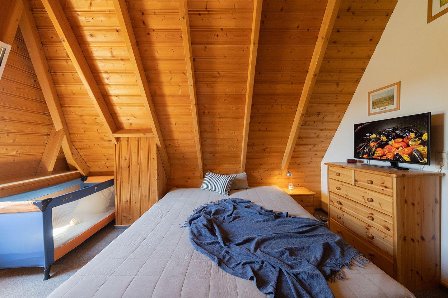 Im Obergeschoss wartet ein geräumiges Schlafzimmer mit Doppelbett, Einzelbett und Zustellbett sowie ein zweites Schlafzimmer mit zwei getrennt stehenden Betten. Kinderbett, Hochstuhl und Treppengitter sind selbstverständlich vorhanden. Die möblierte Terrasse lädt zum Spielen und Schmökern ein, der Garten bietet Platz zum Toben. Das Haus liegt in Strandnähe (1km), fußläufig erreichst du Watt’n Bad, Kutterhafen und Leuchtturm Obereversand. Parkplätze am Haus, E-Ladesäule in der Anlage.