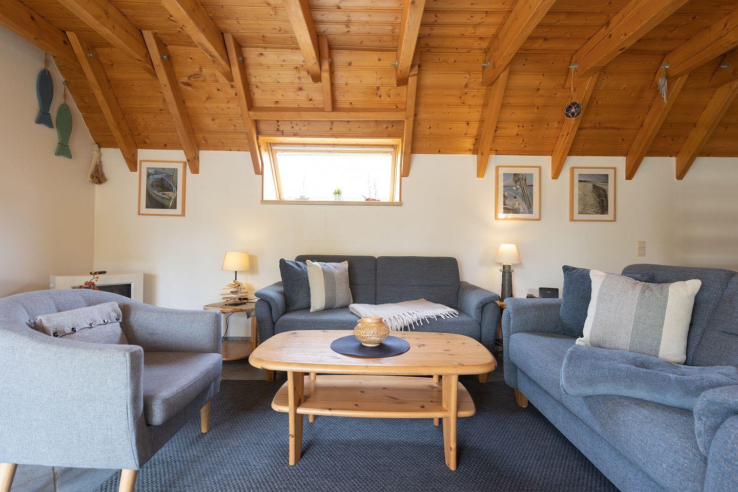 Nach dem Strandtag schnell die Matschsachen in die Ecke, rein ins Wohnzimmer und die Füße hoch vor dem Kamin. So geht entspannter Familienurlaub in Dorum-Neufeld. Das Ferienhaus Westertill 10 liegt ruhig an der Wurster Nordseeküste, etwa 1 km vom Meer entfernt, und bietet auf 61?m² Wohnfläche Platz für vier Personen. Ideal für eine kleine Familie oder Paare, die in Strandnähe ein komfortables Ferienhaus mit Garten suchen.