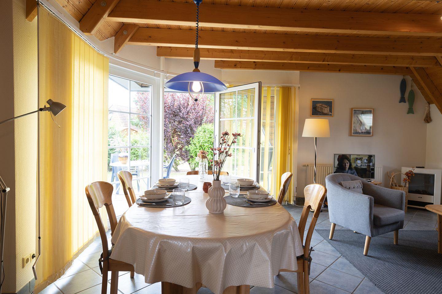 Für Familien stehen ein Kinderbett, Hochstuhl, Treppengitter und Steckdosensicherungen bereit. Das Haus ist rundum familienfreundlich. WLAN, zwei Fernseher, DVD-Player und Spiele sorgen für Unterhaltung.