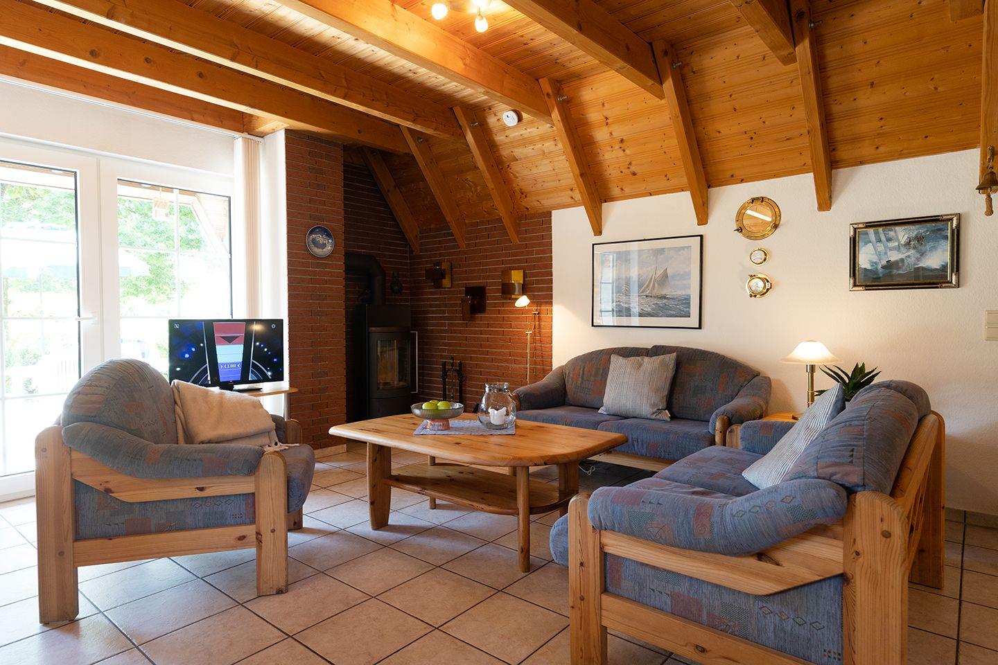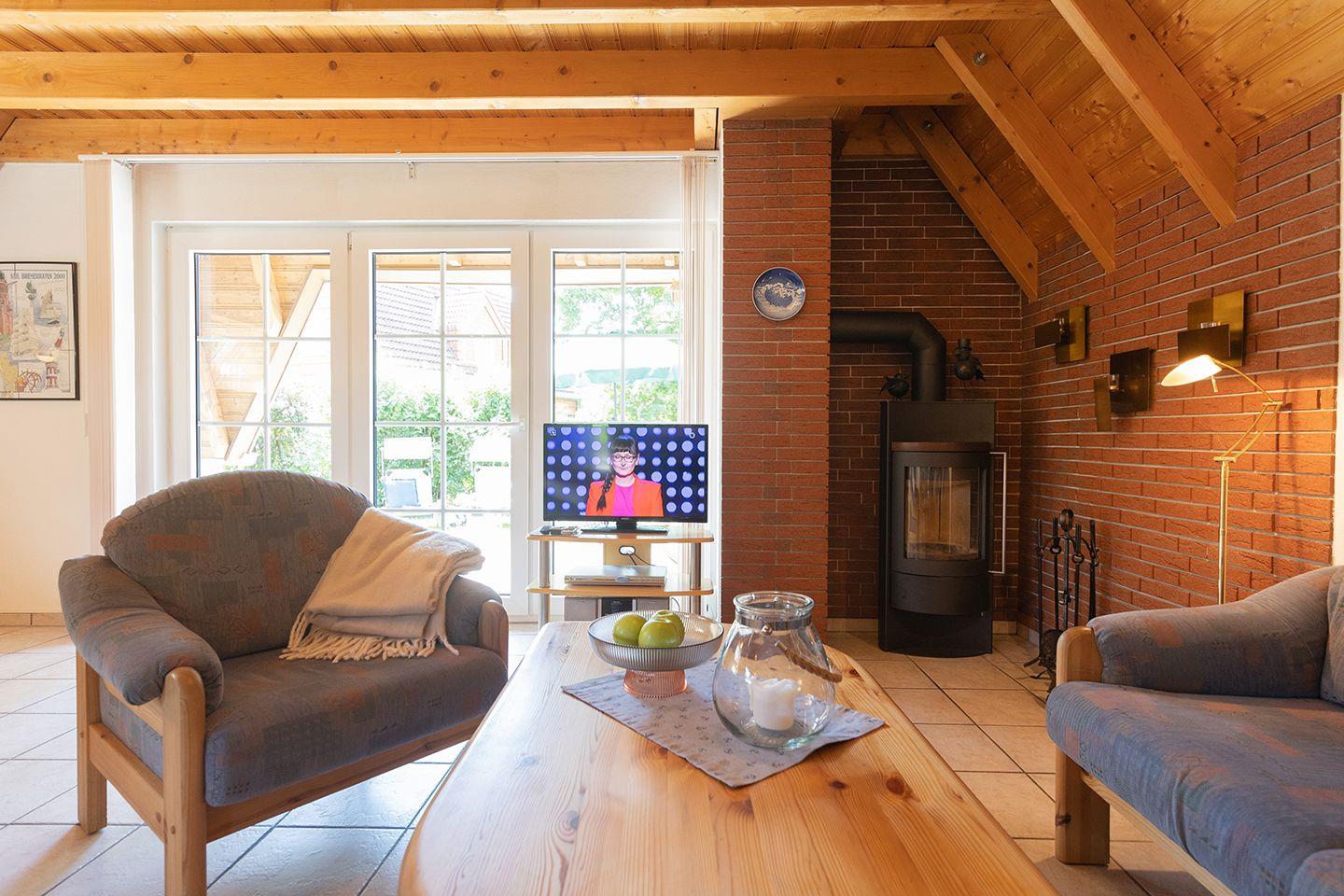 Freistehendes Ferienhaus Medemsand 4 bei Dorum-Neufeld mit Garten, Terrasse, Kamin und Strandnähe für erholsame Familienferien.