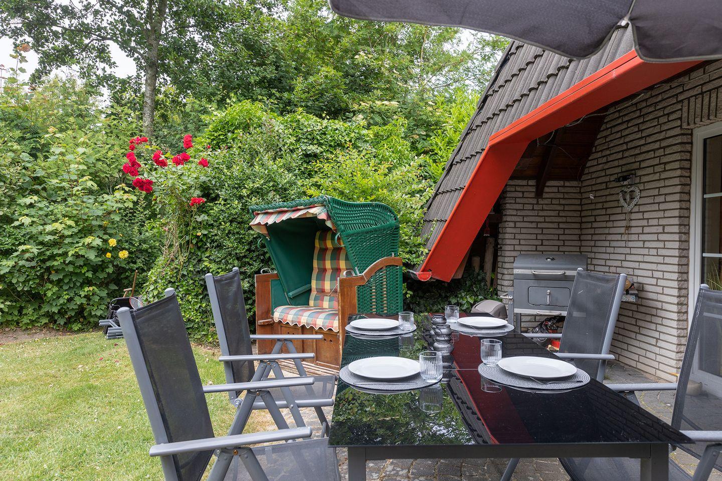 Kinderbett, Hochstuhl, Treppengitter und Steckdosensicherungen sind vorhanden. Im Garten mit Terrasse, Strandkorb, Grill, Gartenmöbeln und Liegen lässt sich Familienzeit am Meer genießen, in Strandnähe (1km) und mit Garten. WLAN, zwei TVs, Spiele und Waschmaschine machen das Haus ideal für Familien.