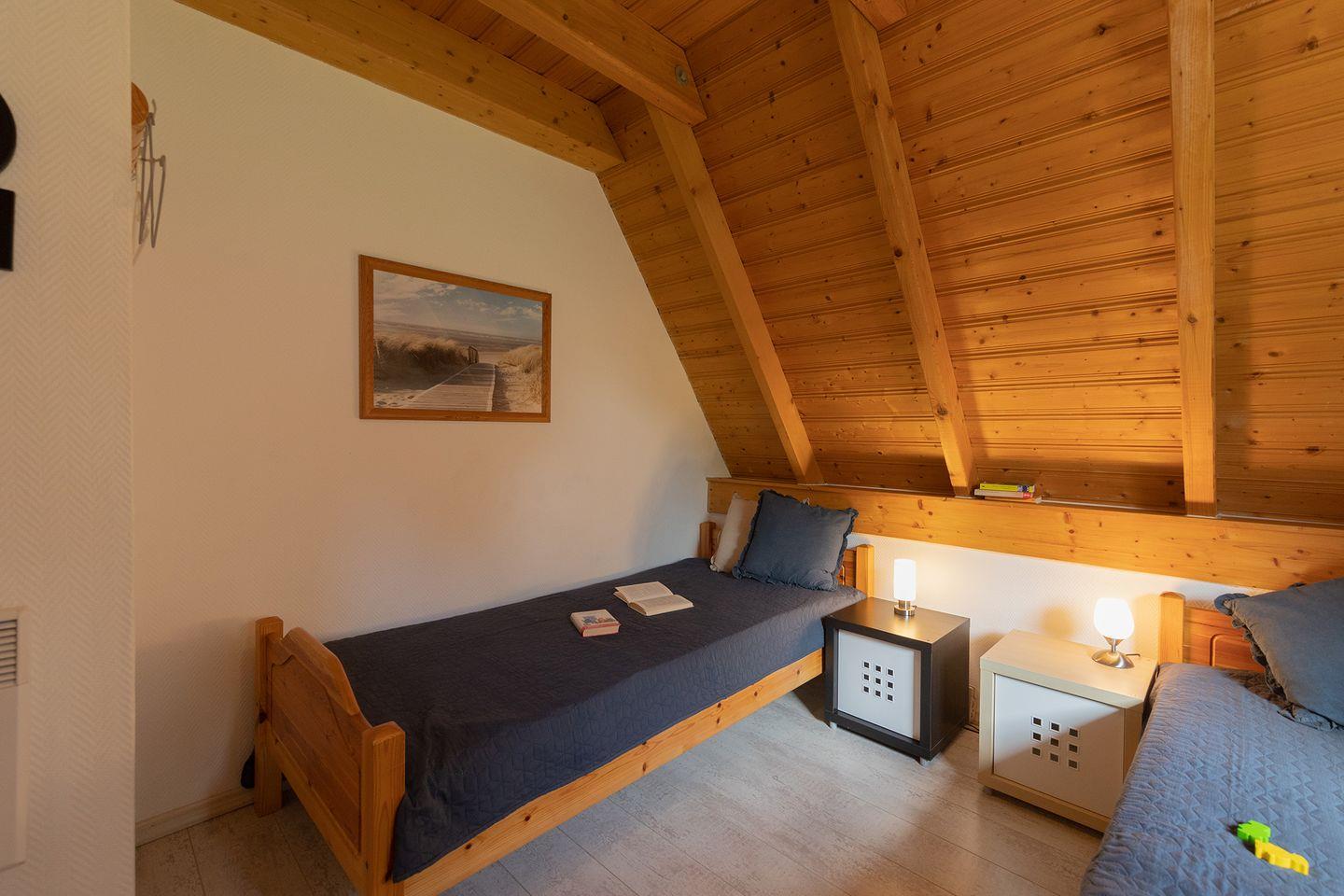 Im Erdgeschoss befinden sich neben Küche und Wohnzimmer ein Schlafzimmer mit zwei Einzelbetten sowie ein Duschbad mit Waschmaschine. Oben: Elternschlafzimmer mit Doppelbett, ein weiteres Zimmer mit getrennten Betten und ein zusätzliches WC. Die möblierte Terrasse im grünen Garten ist ideal zum Grillen oder einfach fürs Draußensein.