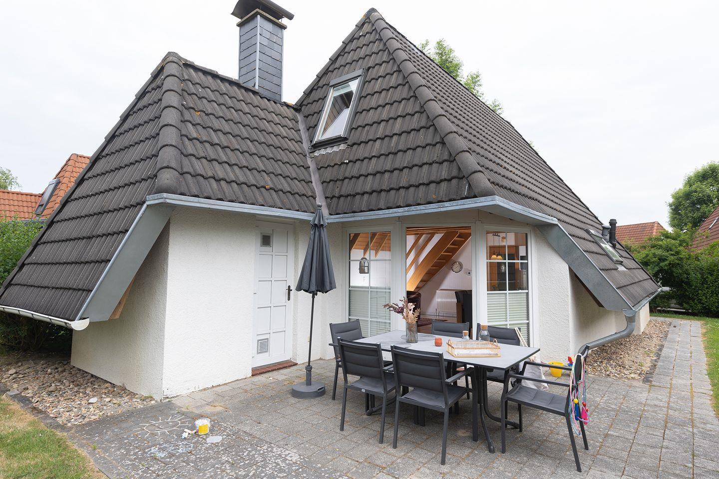 Im Erdgeschoss befinden sich ein Wohn-Esszimmer mit offener Küche, ein Bad mit Dusche und WC sowie ein Schlafzimmer mit Doppelbett. Im Obergeschoss gibt es zwei weitere Schlafzimmer mit Doppelbetten und ein zusätzliches WC. Der eingewachsene Garten mit sonniger Terrasse, Sitzplätzen für sechs Personen und Grill lädt zu entspannten Abenden ein. Laminat- und Fliesenböden, Waschmaschine, zwei Fernseher sowie Kinderbett und Hochstuhl machen das Haus besonders familienfreundlich. Hunde sind erlaubt.
