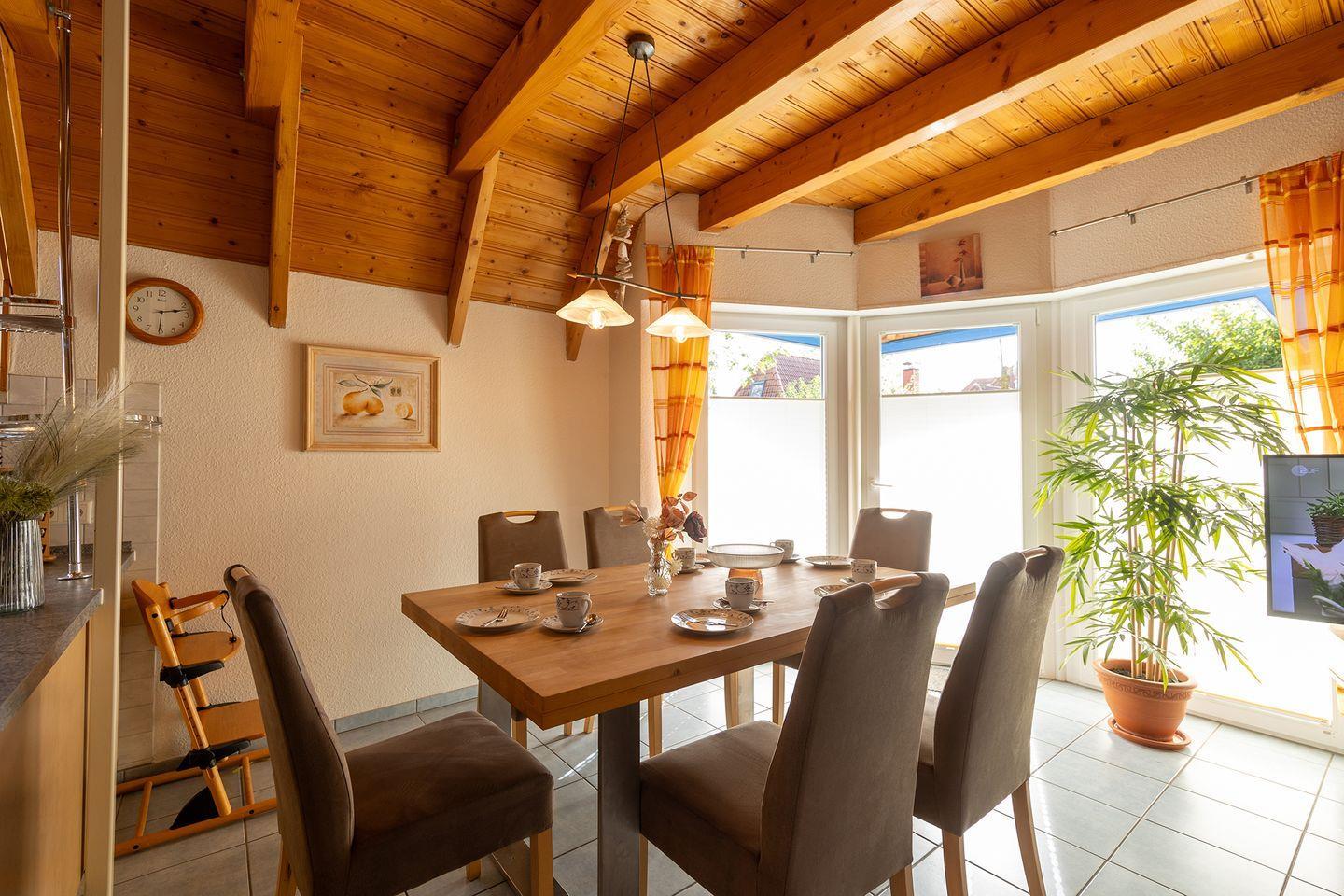 Auf 85?qm verteilen sich drei Schlafzimmer, zwei WCs und ein Bad mit Fußbodenheizung. Der offene Wohnbereich mit Kaminofen und Küche lädt zu langen Abenden ein. Familienfreundlich eingerichtet, mit Rollläden an allen Fenstern, Kinderbett und Hochstuhl. In Strandnähe gelegen (1km), fußläufig zu Leuchtturm Obereversand, Kutterhafen und Nordsee. Dazu ein kostenfreier Parkplatz und E-Ladestationen an der Rezeption.