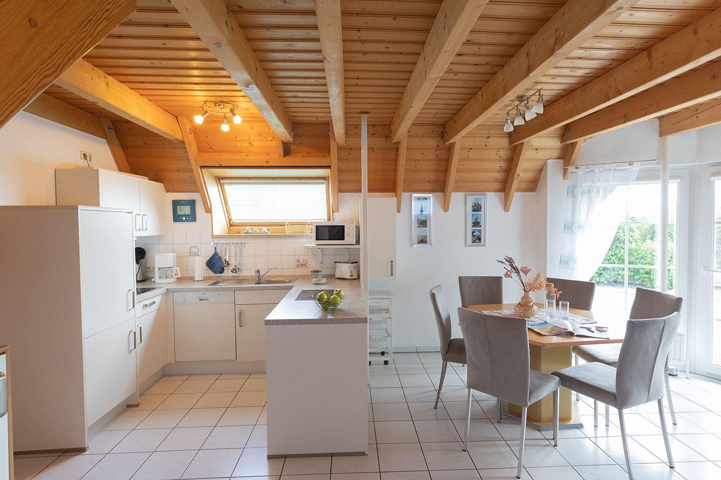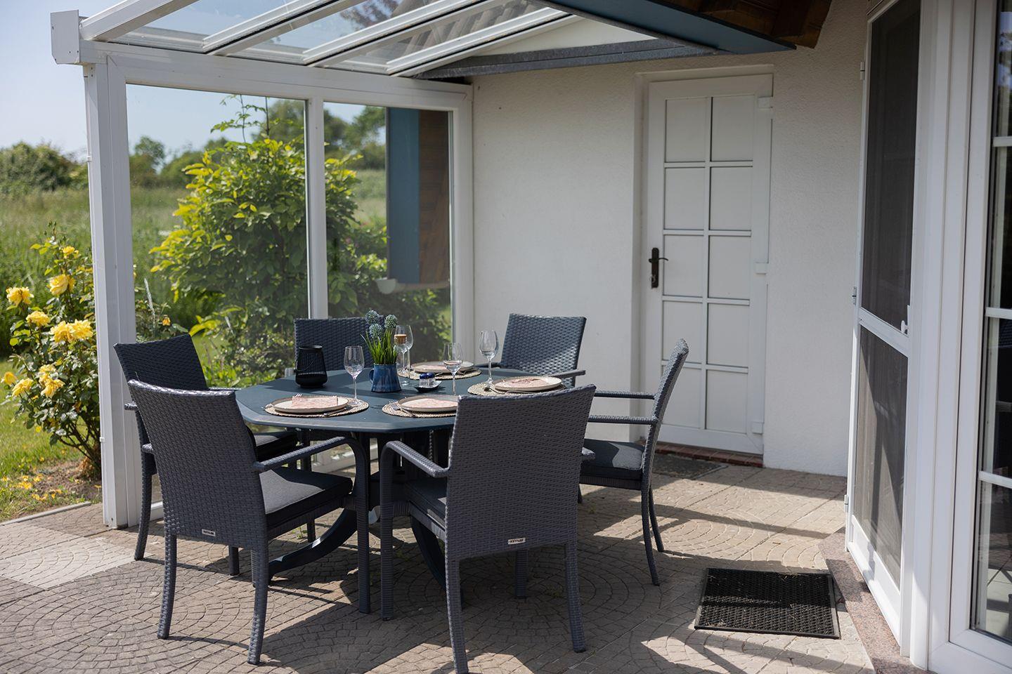 Die möblierte Terrasse im grünen Garten bietet Platz für sechs Personen, perfekt zum Grillen oder für ein Sonnenpäuschen zwischendurch. Kinderbett und Hochstuhl sind natürlich da. Der Strand, das Watt’n Bad, der Kutterhafen und kleine Restaurants sind bequem zu Fuß (1 km) erreichbar. Ein kostenfreier Parkplatz steht ebenso zur Verfügung wie eine E-Ladestation an der Rezeption. Nordseeurlaub, wie er sein soll: unkompliziert, durchdacht und gut gelaunt.