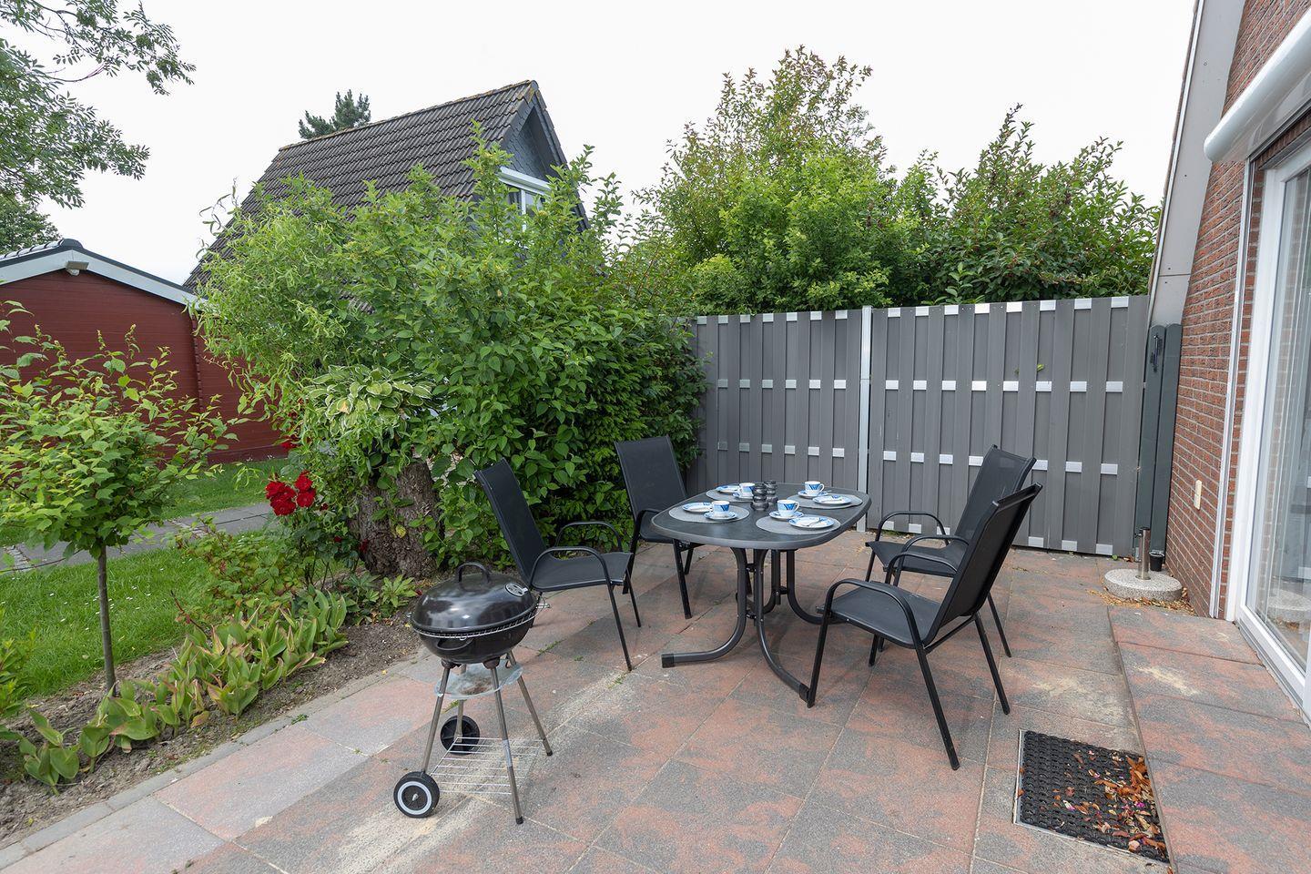 Im Garten mit Terrasse, Grill, Gartenmöbeln und Sonnenliegen lässt sich die Familienzeit am Meer genießen – in Strandnähe und mit Garten. WLAN, Waschmaschine und Spiele sind ebenfalls vorhanden. Eine E-Ladesäule in der Anlage sowie kostenfreie Parkplätze am Haus sorgen für Komfort.