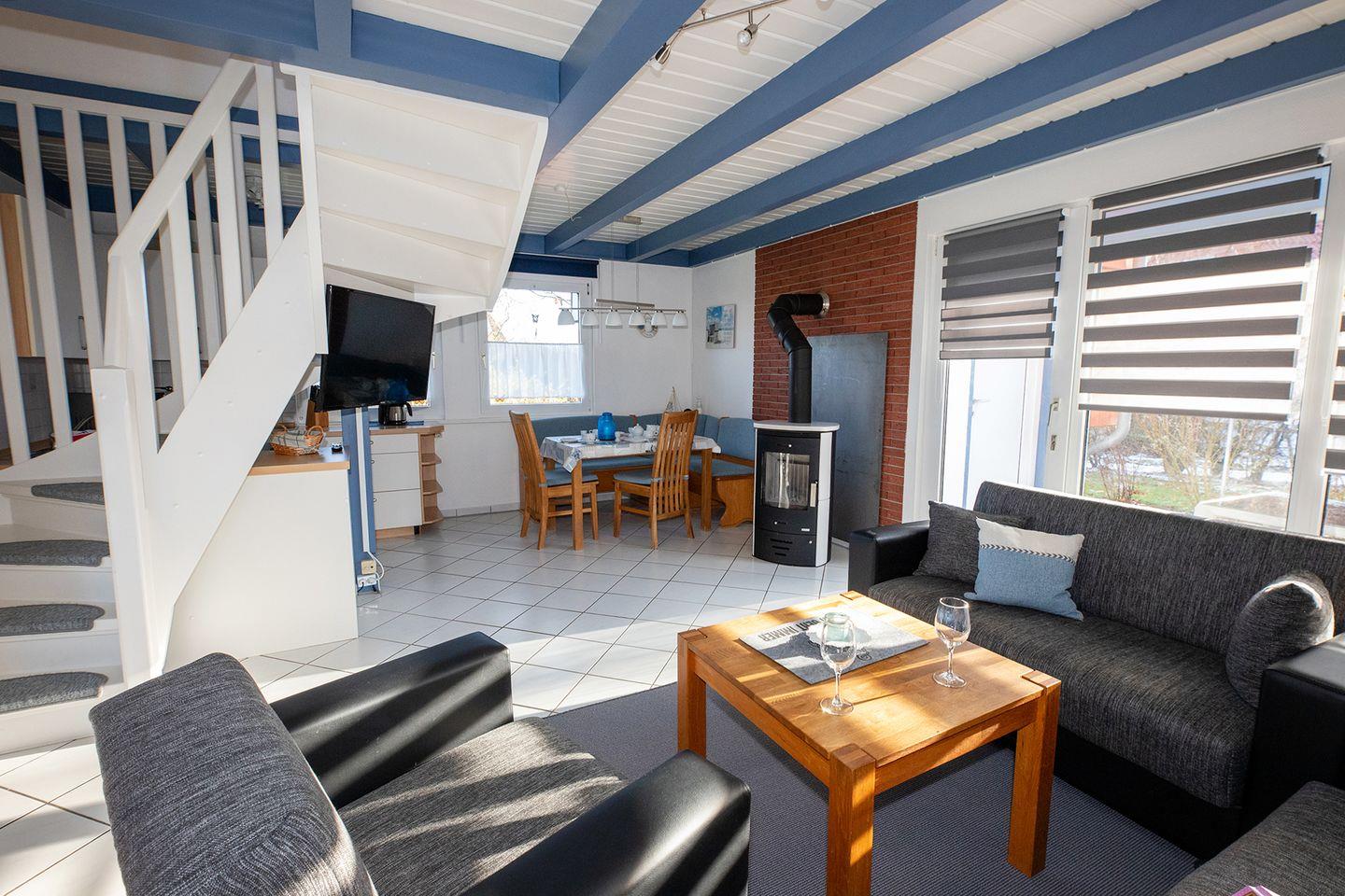 Ein gemütliches Ferienhaus für Familien an der Nordsee: In Dorum-Neufeld bietet dieses Haus auf zwei Etagen drei Schlafzimmer, einen Wohnbereich mit Kaminofen und eine offene Küche. Kinderbett, Hochstuhl und Treppengitter sind ebenso vorhanden wie kostenfreie Parkplätze am Haus. Bis zu zwei Haustiere sind willkommen. Der Strand, der Kutterhafen und der Leuchtturm Obereversand sind fußläufig erreichbar (1km). Für E-Autos steht eine Ladesäule in der Anlage zur Verfügung.
