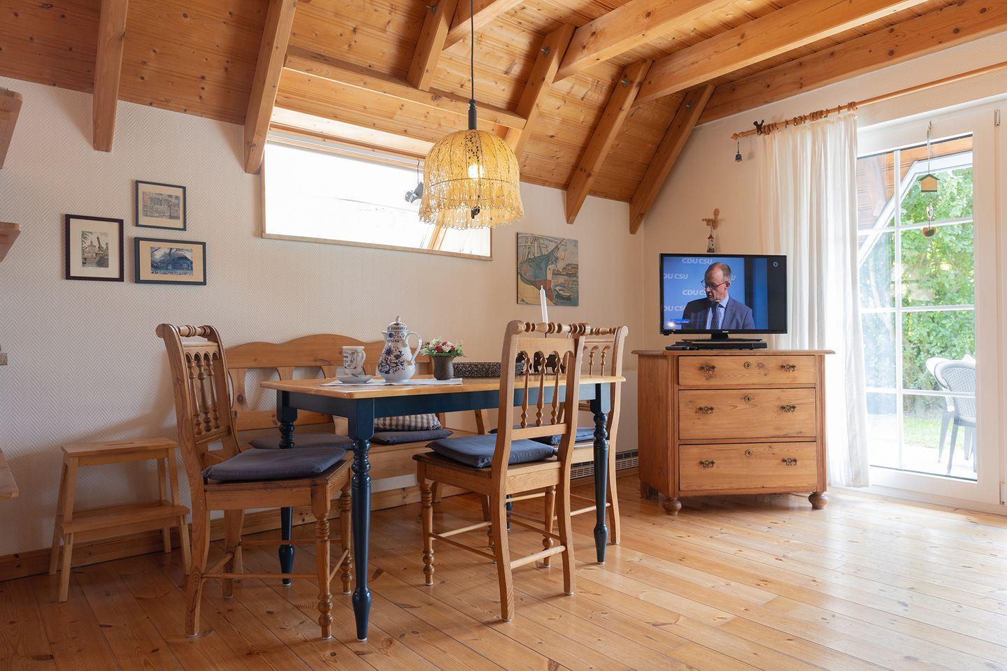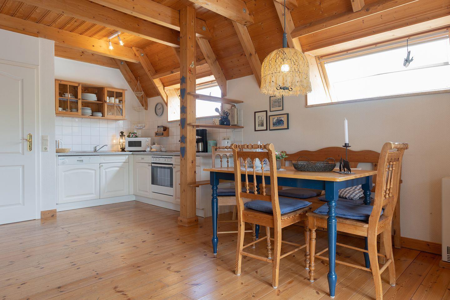 Wenn das Kaminfeuer leise knackt und draußen der Wind über die Felder zieht, wird der Nordseeurlaub mit Kindern in Medemsand 17 besonders gemütlich. Das freistehende, familienfreundliche Ferienhaus für bis zu vier Personen liegt in Dorum-Neufeld an der Nordsee, in strandnaher (1km) Lage mit Garten und zwei Etagen: unten ein heller Wohnbereich mit offener Küche, Gäste-WC und Zugang zur möblierten Terrasse. Oben zwei Schlafzimmer mit Vinylboden – perfekt für erholsame Nächte. Kaminofen, Spiele, WLAN und Blu-ray-Player bieten auch drinnen viel Abwechslung.