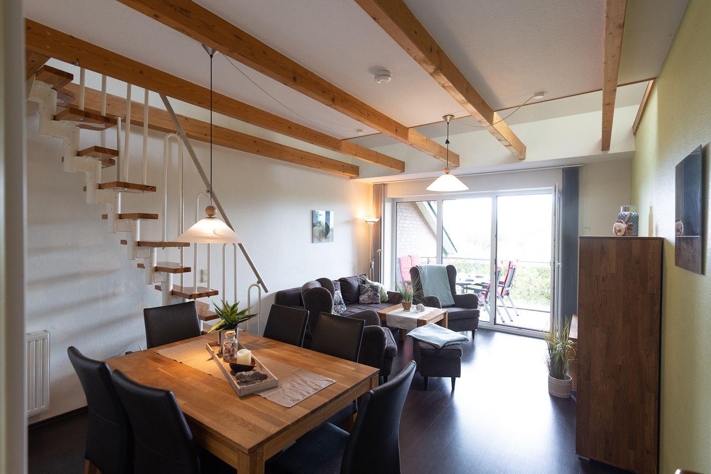 Gemütliche Maisonettewohnung Lili Marleen mit Loggia nahe der Nordsee, ideal für Familien, ruhig und modern ausgestattet.