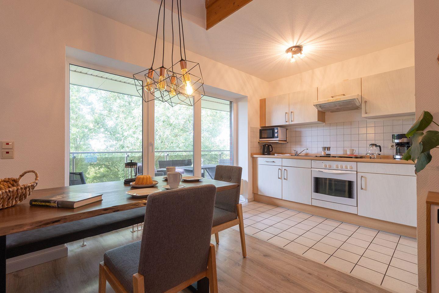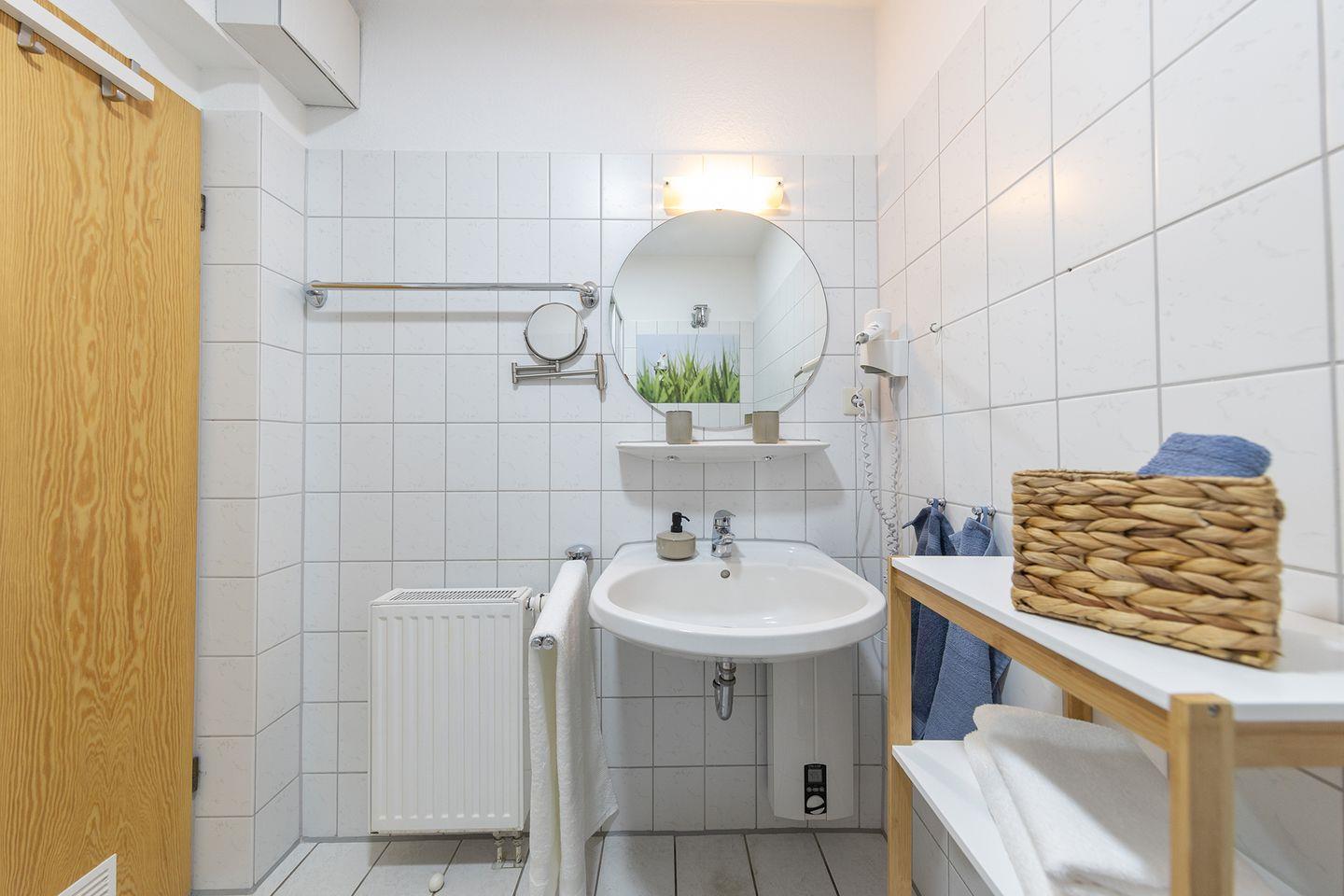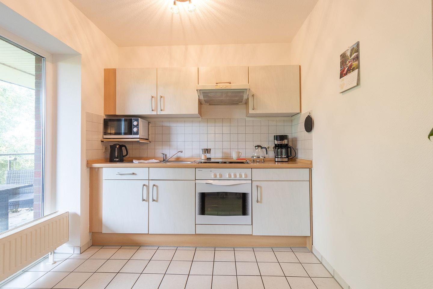 Die Küchenzeile ist in den Wohnbereich integriert und voll ausgestattet. Kochen, Spielen, Zusammensein: alles an einem Ort. Laminat in den Wohnräumen, Fliesen in Küche und Bad, dazu ein Duschbad mit WC. Für kleine Gäste stehen Kinderbett und Hochstuhl bereit, der Parkplatz ist kostenlos. Deich, Strand und der Hafen von Wremen sind nur einen kurzen Spaziergang entfernt.