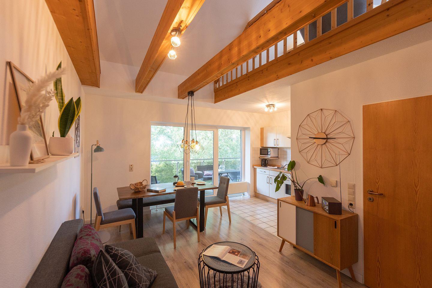 Wenn morgens die Sonne über dem Deich aufgeht und sich das Licht auf dem Wasser spiegelt, hast du von dieser Maisonettewohnung aus den besten Blick. Hoch oben im Appartementhaus „Lilli-Marleen“ gelegen, bietet sie auf ca. 70?m² ein helles, offenes Wohngefühl mit Galerie, zwei Schlafzimmern, einer Schlafcouch und Platz für bis zu sechs Personen. Die strandnahe Lage und die großzügige Loggia mit Blick in den Sternenhimmel machen sie zum Rückzugsort für Familien, die das Meer lieben.