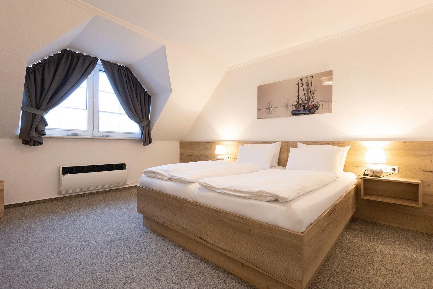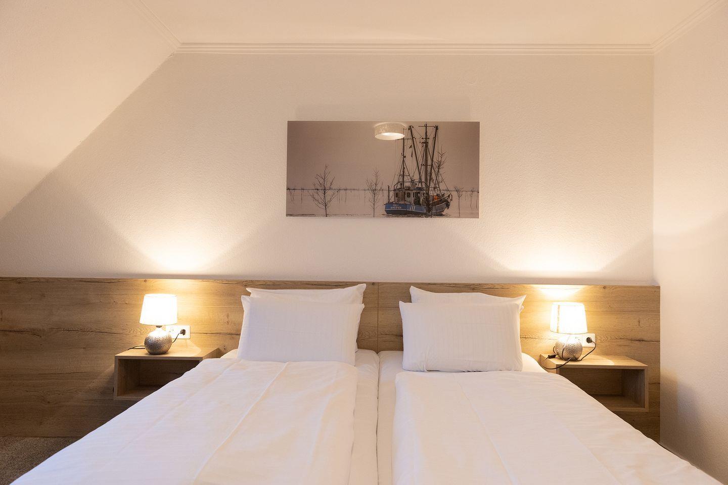Modernes Doppelzimmer nahe Strand und Kutterhafen in Dorum-Neufeld bietet Komfort und Erholung an der Nordsee.