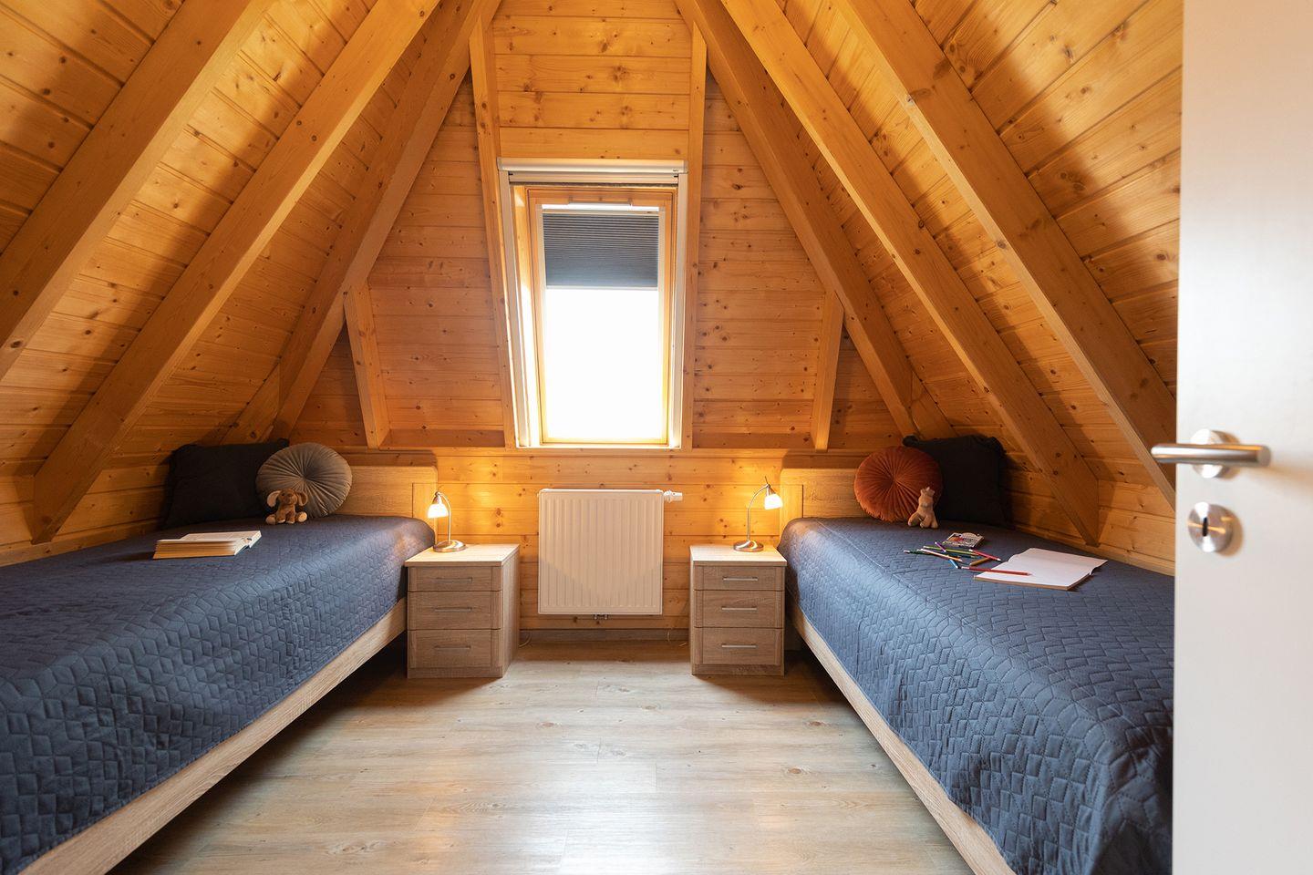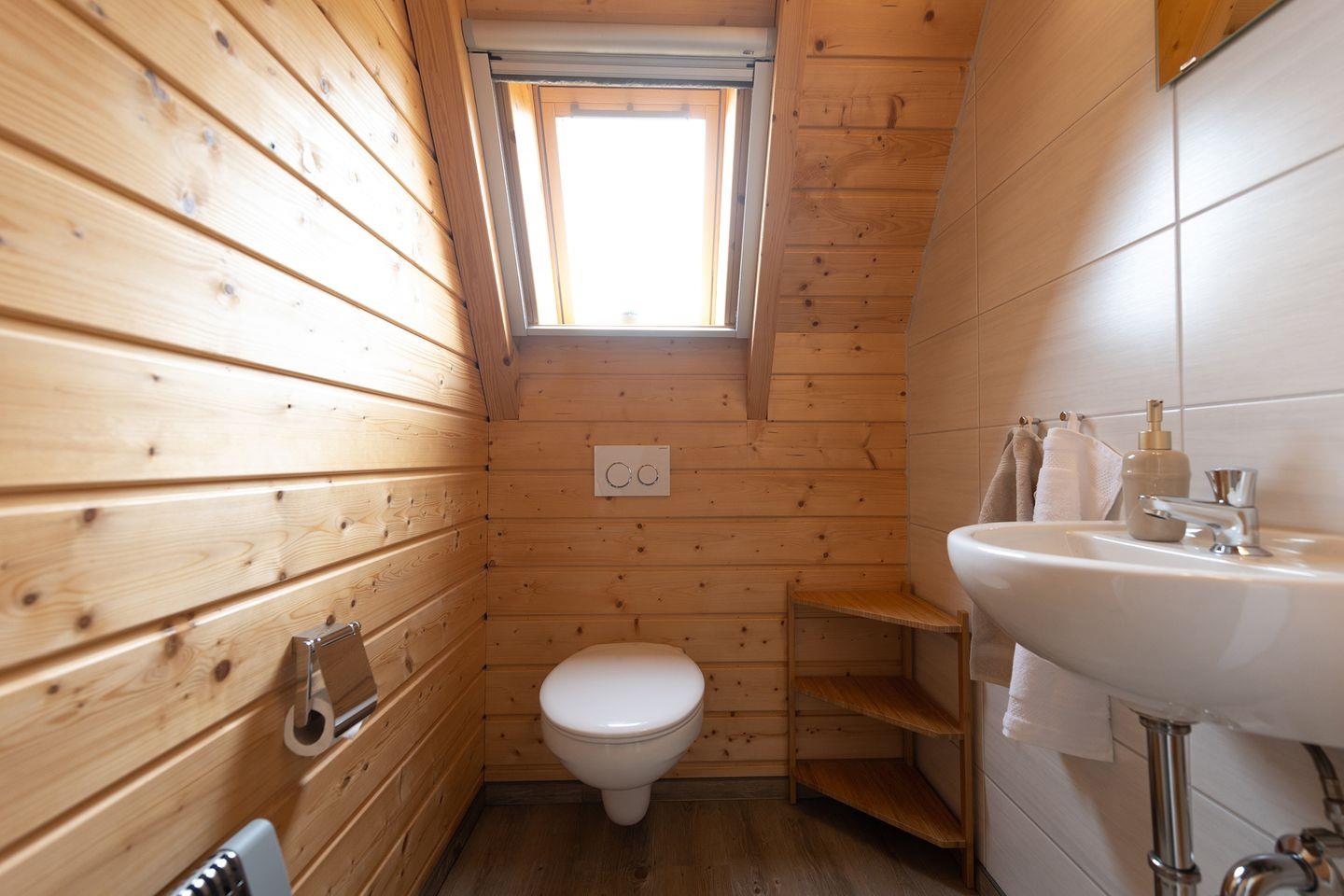 Im Obergeschoss findet ihr das Elternschlafzimmer mit Doppelbett und TV sowie ein weiteres Zimmer mit zwei Einzelbetten und separatem WC. Abdunkelungsrollos garantieren erholsame Nächte und eine Ladestation für E-Autos an der Rezeption sorgt für Komfort.