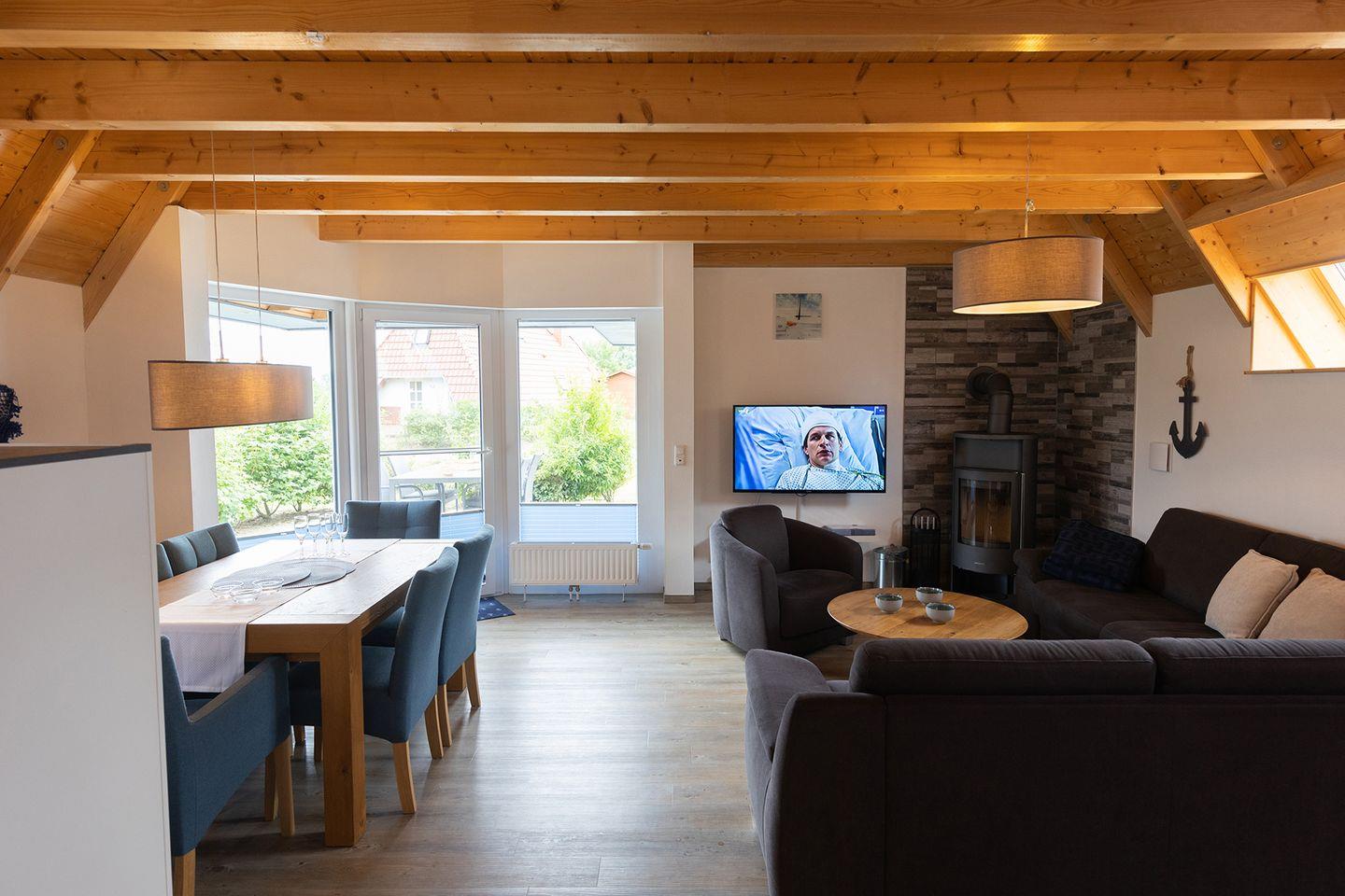 Ferienhaus Happy Krabbe in Dorum-Neufeld bietet familienfreundlichen Komfort mit Kamin, Garten und Nähe zu Strand und Deich.