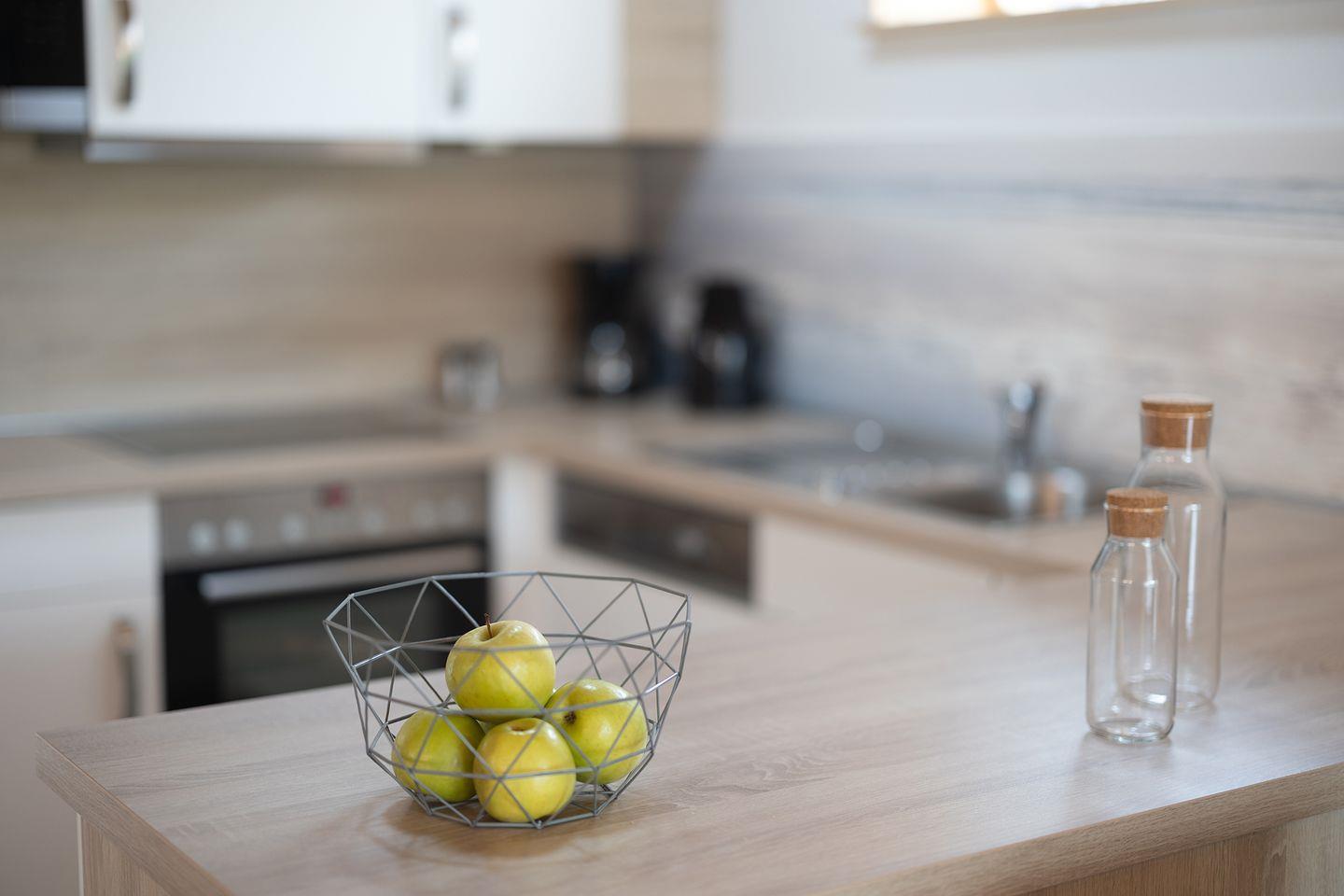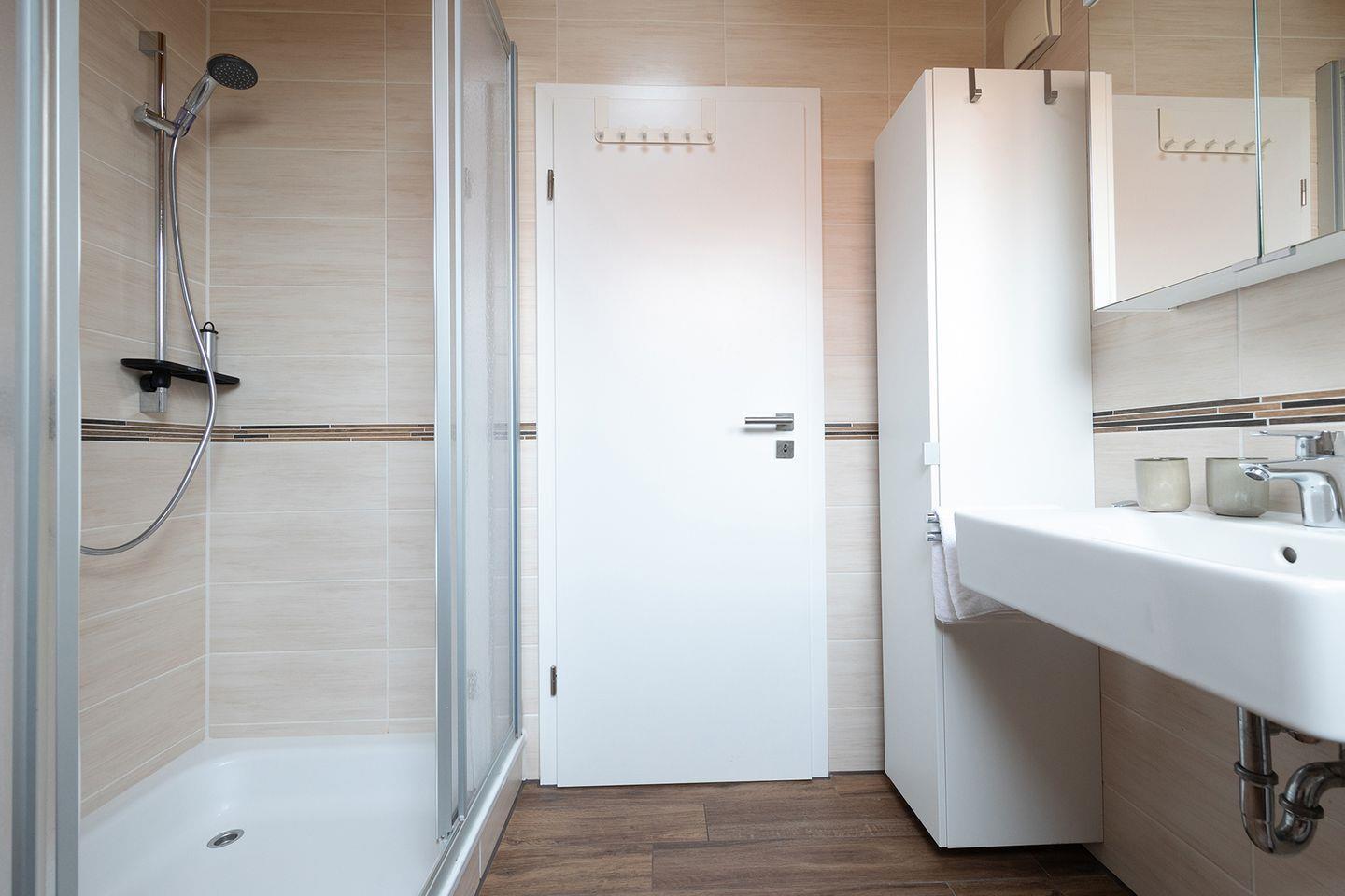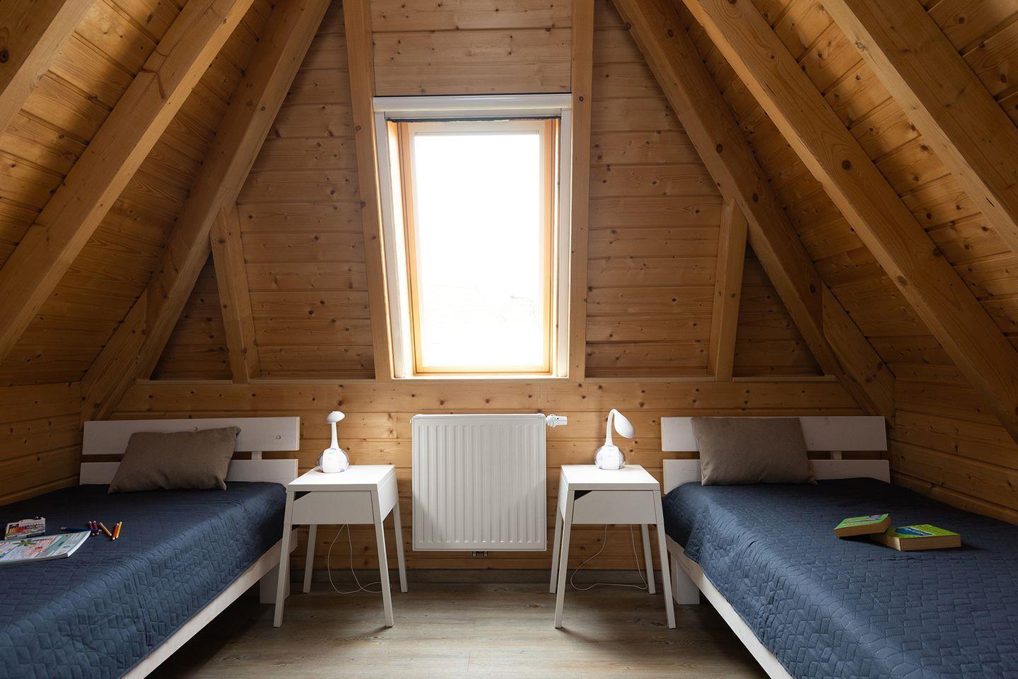 Oben befinden sich das Elternschlafzimmer mit Doppelbett, ein weiteres Kinderzimmer mit getrennten Betten sowie ein zusätzliches WC. Fliesen und Laminat sorgen für ein pflegeleichtes Zuhause auf Zeit, die zentrale Gastherme für angenehme Wärme. Kinderbett und Hochstuhl sind vorhanden.