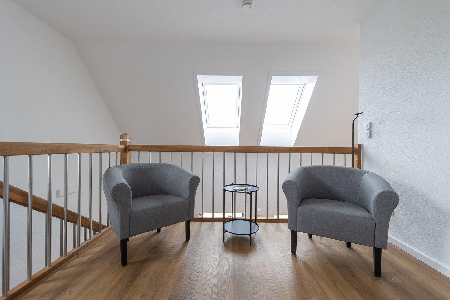 Hier, wo die Gezeiten den Takt vorgeben, liegt dieses Ferienhaus in Endlage, strandnah, ruhig und ideal für Familien mit bis zu sechs Personen. Das Haus gehört zu einem kleinen Ferienpark am Deich in Wremen. Auf 66?m² finden Familien alles, was es für eine entspannte Auszeit braucht: ein heller Wohnbereich mit großer Fensterfront, voll ausgestattete Küche, ein Schlafzimmer mit Doppelbett im Erdgeschoss und zwei weitere Schlafräume oben mit Doppelbett. Zwei Duschbäder, Galerie mit Loungeecke und eine moderne Belüftung sorgen für Komfort, auch bei typischem Nordseewetter.