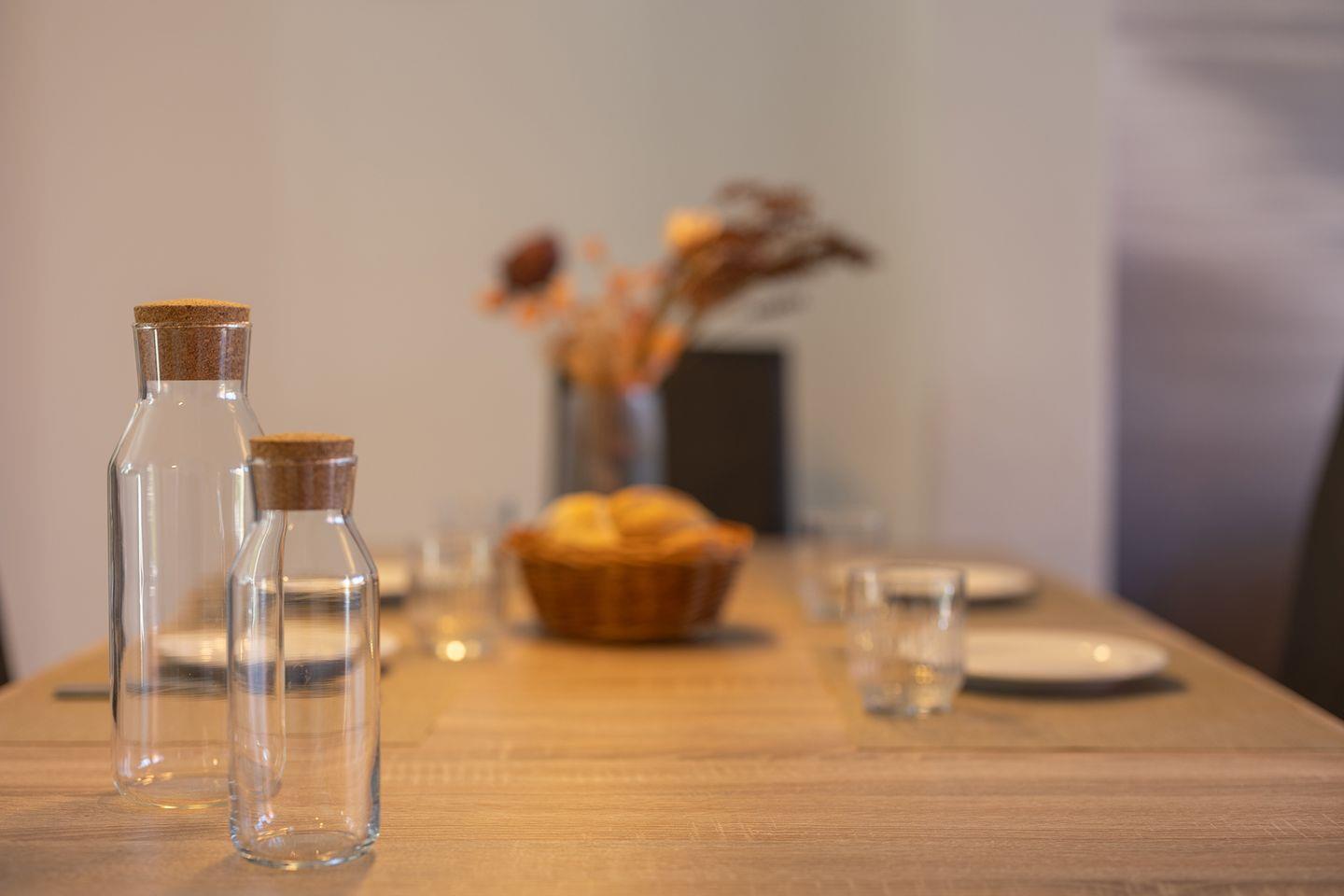 Im Erdgeschoss: ein heller Wohn-Essbereich mit gemütlicher Wohnlandschaft, offener Küche, Esstisch und Gäste-WC. Im Obergeschoss: drei Schlafzimmer – mit Doppelbett, zwei Einzelbetten und einem Etagenbett – sowie ein Duschbad. Alle Schlafräume können verdunkelt werden und sind mit Laminat ausgelegt. Fußbodenheizung und automatische Be- und Entlüftung sorgen für ein angenehmes Raumklima.