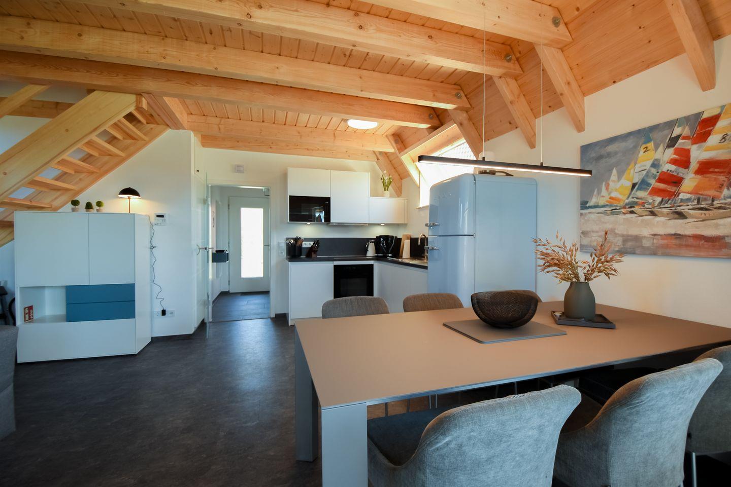 Die Terrasse ist windgeschützt, mit Grill, Sitzplätzen und Sonnenliegen, perfekt für gemeinsame Stunden im Freien. Kinderreisebett und Hochstuhl machen den Aufenthalt familienfreundlich. Watt’n Bad, Spielplatz und Kutterhafen erreichst du zu Fuß - hier geht’s norddeutsch gelassen und kindgerecht lebendig zu.