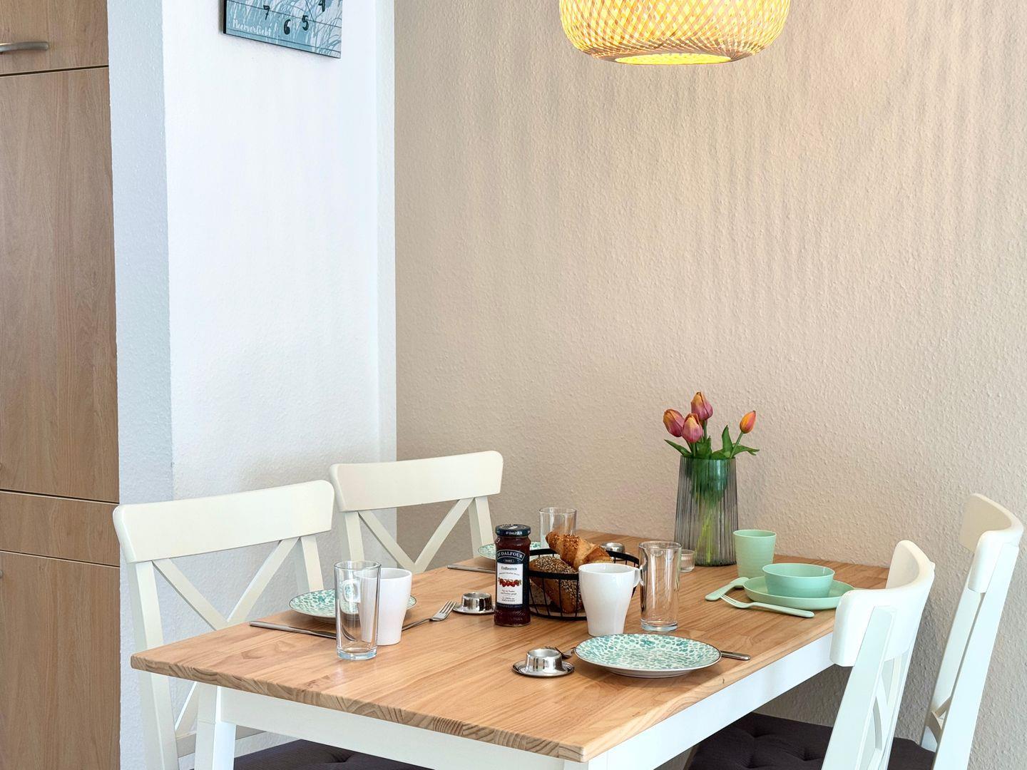 Kostenloses WLAN und ein Parkplatz direkt am Haus gehören ebenfalls dazu. Hunde sind bei uns herzlich willkommen, und der eingezäunte Garten sorgt für Privatsphäre und Sicherheit. Der Gartenzaun hat eine Mindesthöhe von 100 cm.