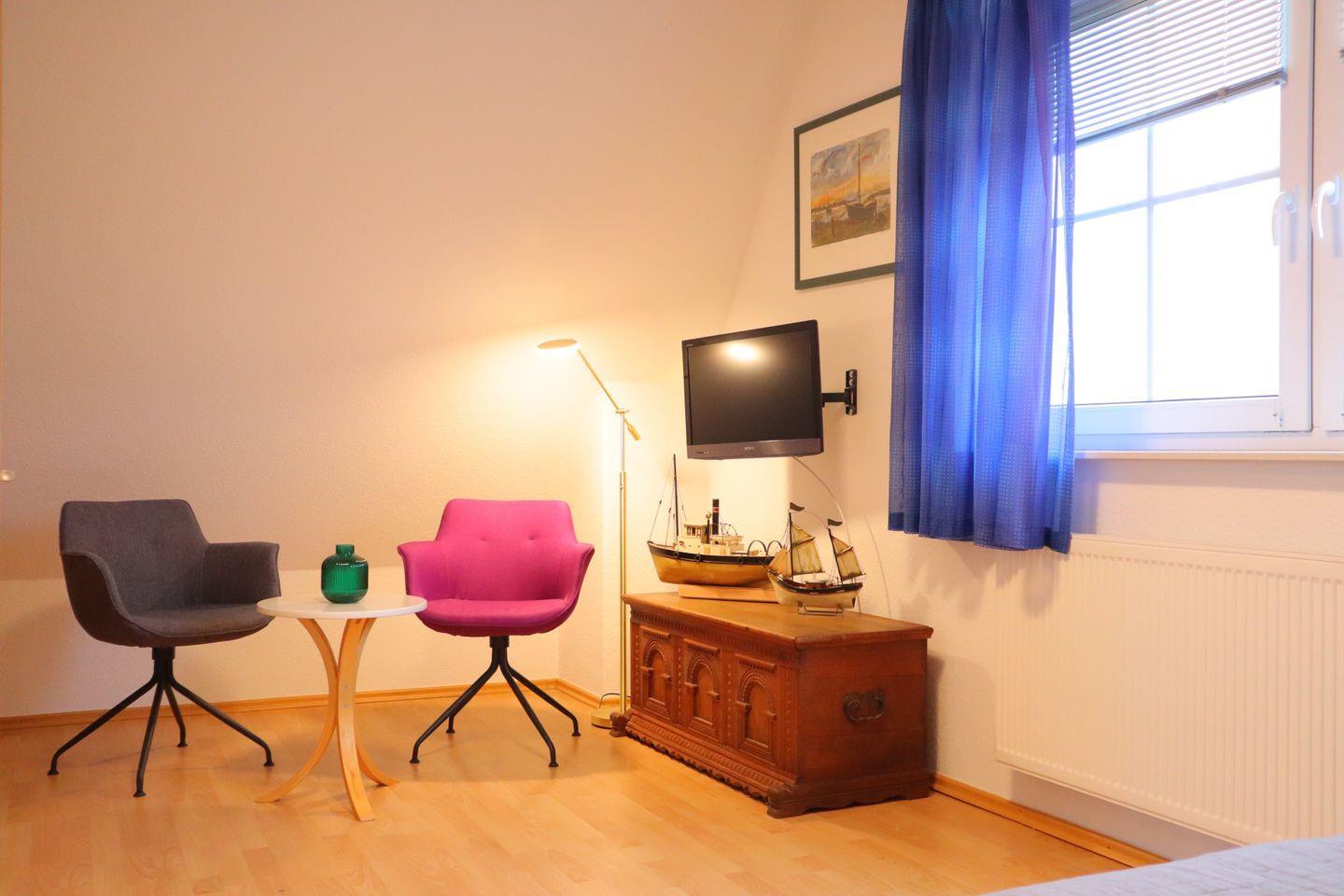 Die liebevoll eingerichtete Villa am Meer- "Seeadler" bietet zwei gemütliche Schlafzimmer, ein modernes Duschbad mit Fußbodenheizung und ein Gäste-WC im Obergeschoss. Außenjalousien und halbseitige angebrachte Fliegengitter sorgen für angenehme Nächte und erholsame Ruhe.