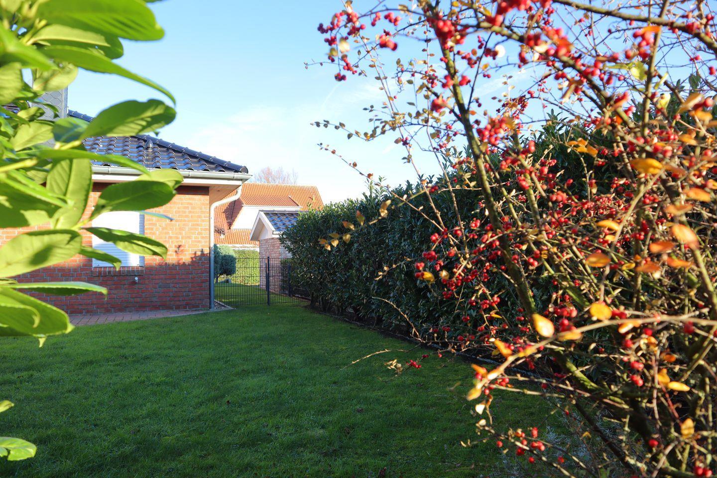 Der eingezäunte Garten ist ein echtes Highlight. Hier können Kinder und Hunde sicher spielen, während Sie auf der sonnigen Süd-Terrasse entspannen oder den Grill anwerfen. Fahrräder und Strandutensilien finden Platz im praktischen Gartenhaus, und ein Bollerwagen macht Ausflüge noch unkomplizierter.