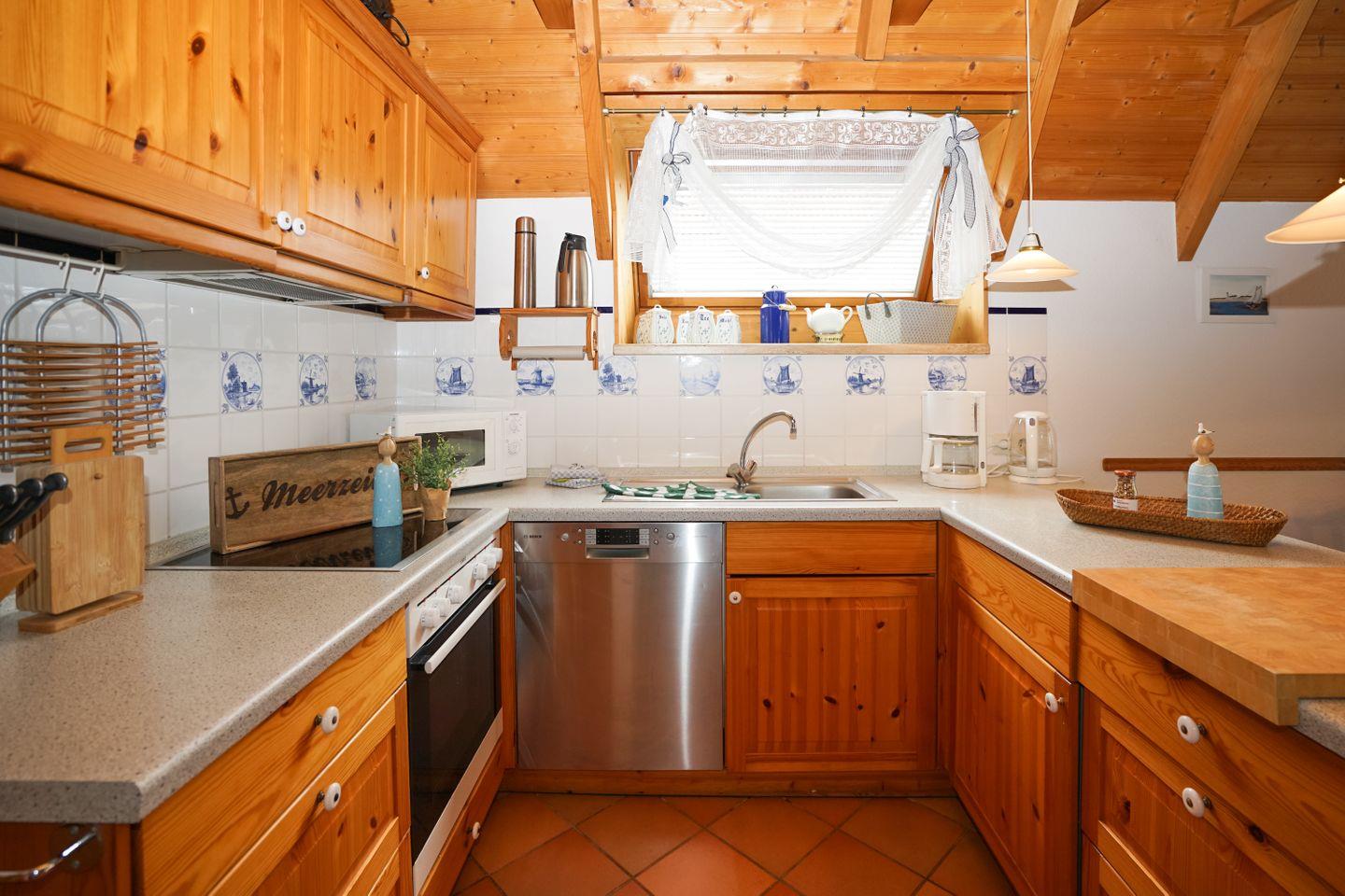 Die gut ausgestattete Küche lässt keine Wünsche offen – auch ein Geschirrspüler ist vorhanden, damit du deine Urlaubstage ganz entspannt genießen kannst.