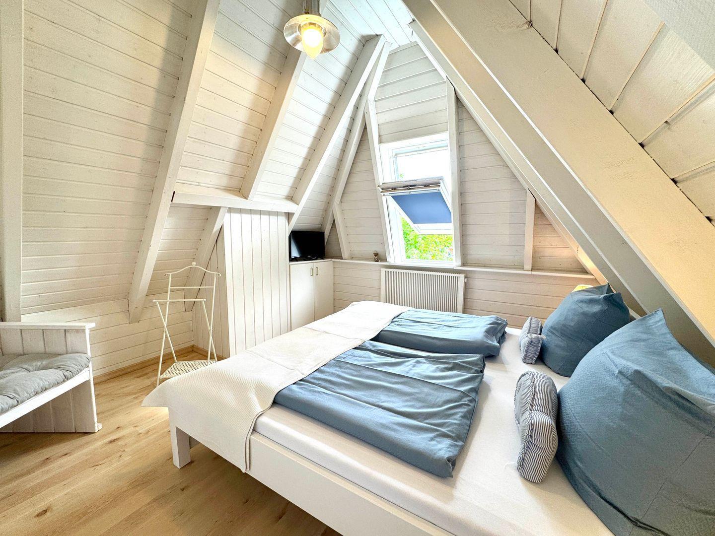 Mit ca. 70 m² Wohnfläche bietet dir Dat Onnen Hus – Nordisch mit Herz alles, was du für eine erholsame Auszeit brauchst. Der offene Wohn- und Küchenbereich mit voll ausgestattete Küche und Geschirrspüler lädt zum Verweilen ein, während der Kamin für gemütliche Abende sorgt (Brennholz bitte selbst mitbringen). Ein Duschbad im Erdgeschoss sorgt für zusätzlichen Komfort. Über eine Wendeltreppe gelangst du ins Dachgeschoss mit zwei hellen Schlafzimmern und einem zusätzlichen Gäste-WC. Im Hauptschlafzimmer befindet sich zudem ein TV.