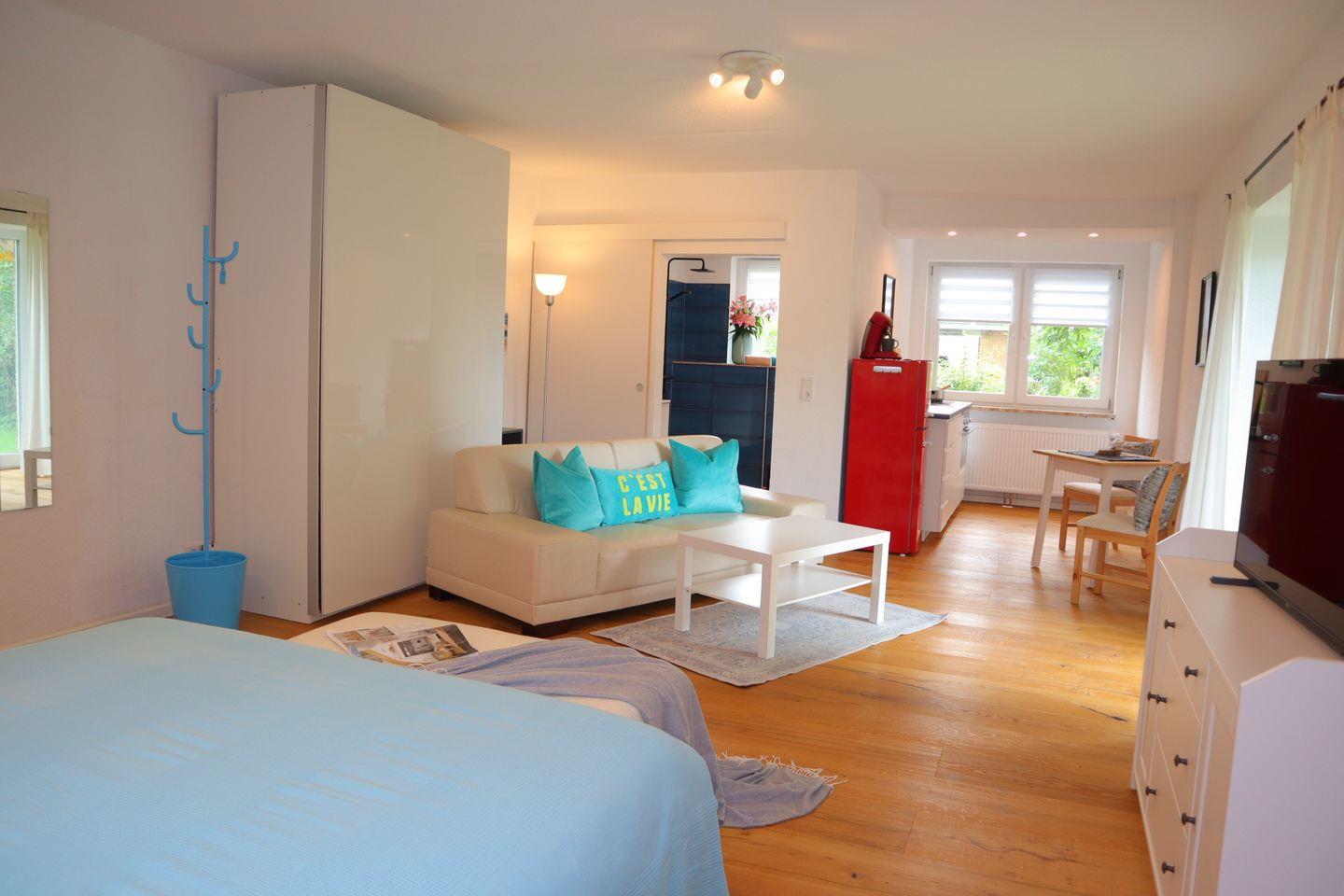 Willkommen in der Ferienwohnung „Am Deich“ – Ihrem charmanten Urlaubsdomizil, das auf 42 m² mit einem großzügigen, offenen Grundriss überzeugt. Hier verschmelzen Wohn-, Ess- und Schlafbereich zu einem harmonischen Raum, der nur durch das Badezimmer räumlich unterbrochen ist – perfekt für Paare, Alleinreisende oder junge Familien mit Kleinkind.