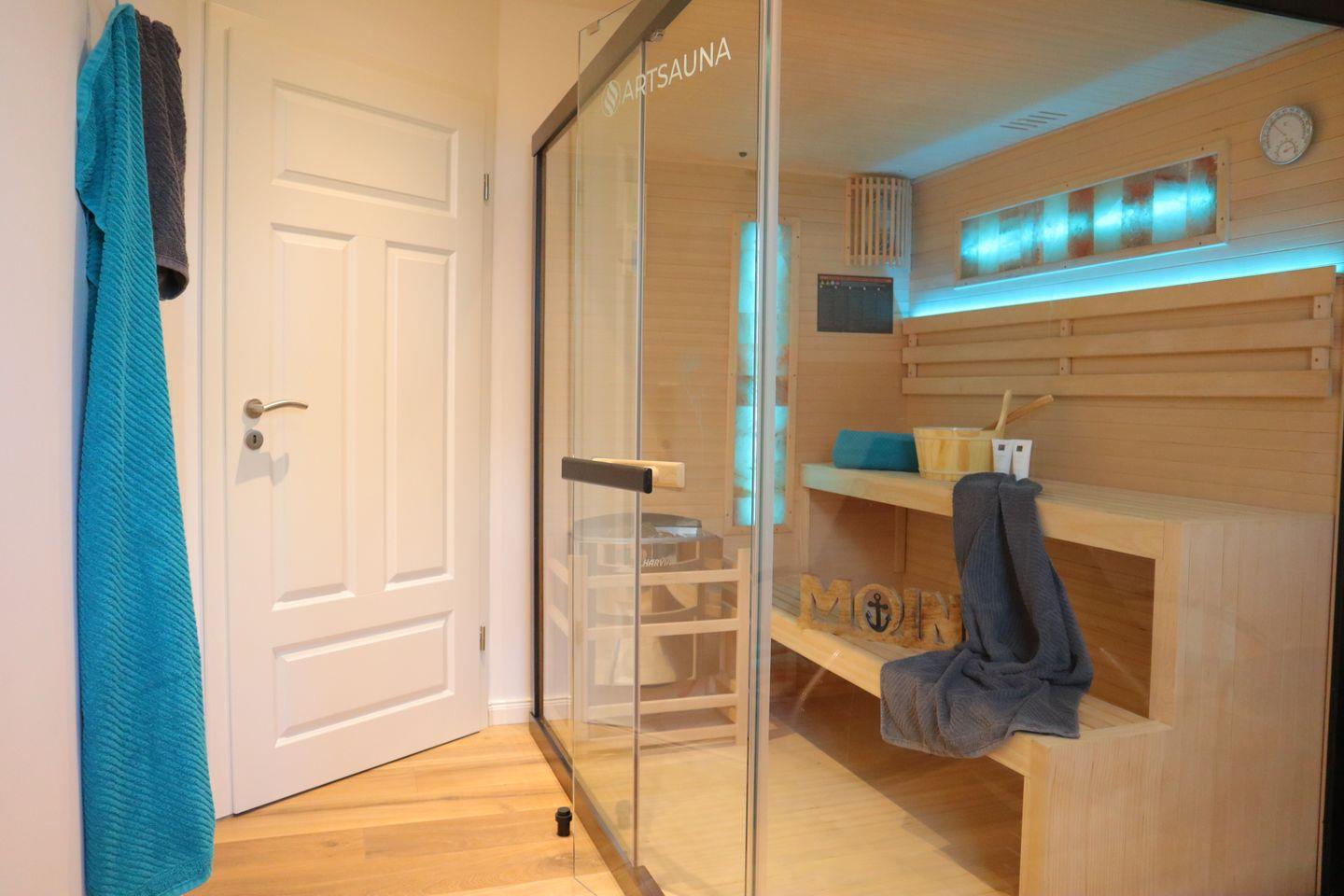Zwei elegant gestaltete Bäder und eine private Sauna vervollständigen das Wohlfühlkonzept auf luxuriöse Weise.