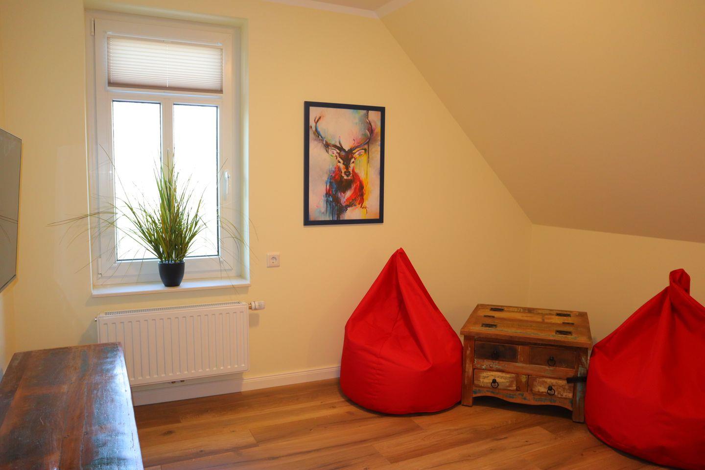 Das hochwertig sanierte Haus bietet fünf Schlafzimmer, zwei Bäder, eine Sauna, eine moderne Wohnküche, einen gemütlichen Wohnbereich mit Kamin sowie eine Terrasse und einen großen eingezäunten Garten.