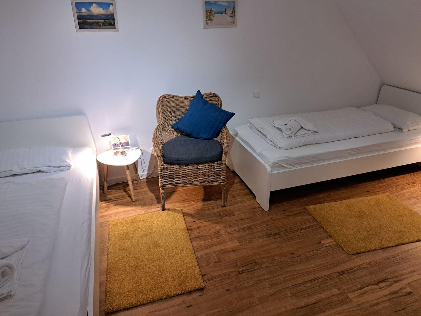 - **Zwei Schlafzimmer**: Unsere komfortablen Schlafzimmer im Obergeschoss sind ideal für Familien oder Gruppen von Freunden. Hier verbringen Sie ruhige Nächte und starten erfrischt in den Tag.