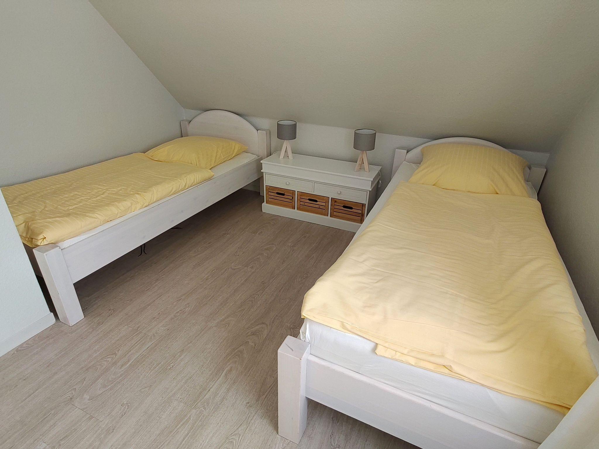 2 Schlafräume davon 1 Schlafraum mit Doppeltbett und 1 Schlafraum mit zwei Einzelbetten, 1 Wohnraum, 1 separate Küche, 1 Badezimmer mit Dusche.