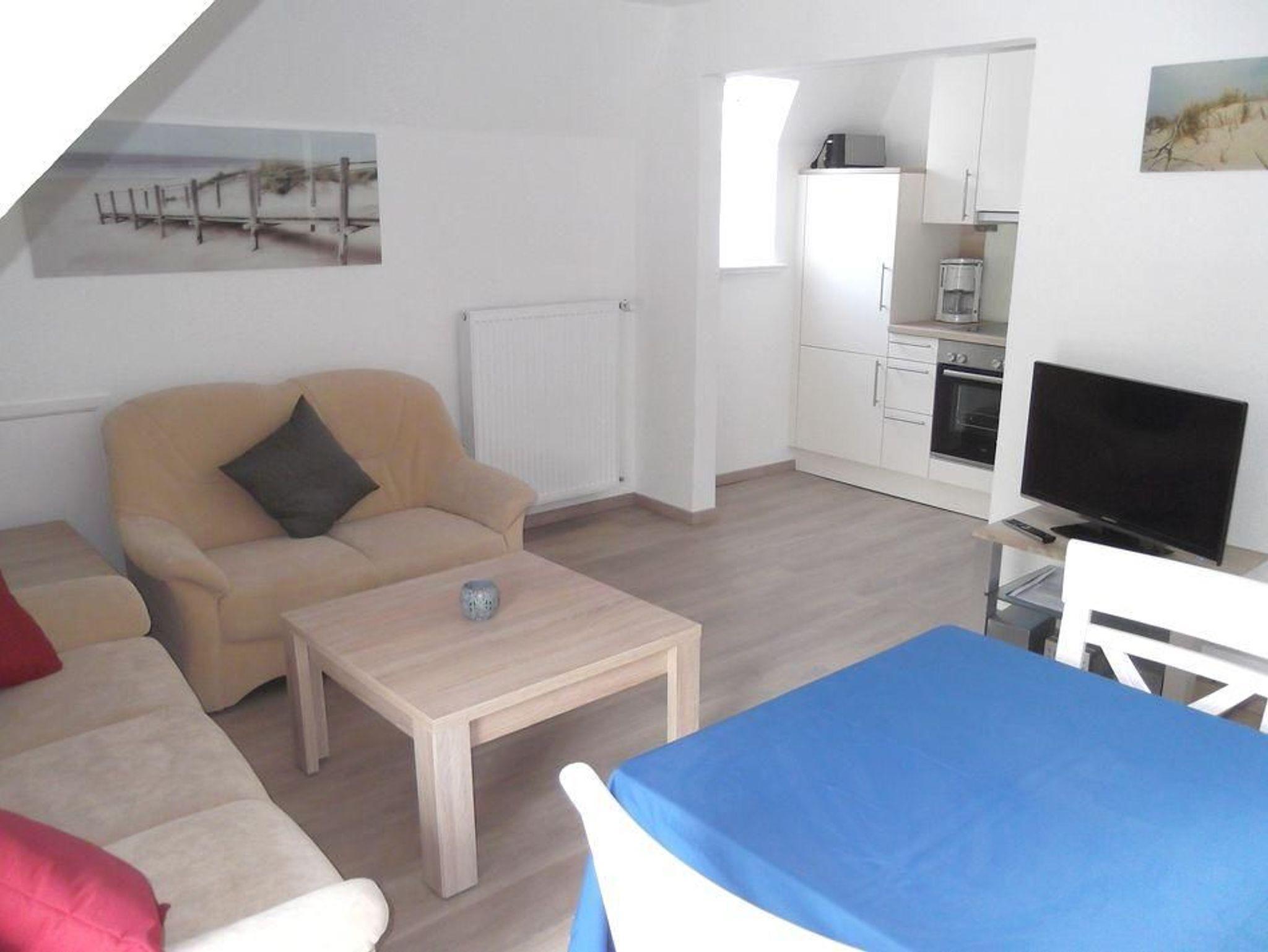 Diese schöne 65 m² große Obergeschosswohnung liegt in der Nähe des Südstrands. Dieser ist nur 400m entfernt. Die Wohnung ist für 2 bis 4 Personen geeignet und bietet neben dem hellen, gemütlichen Wohnzimmer mit Balkon, zwei Schlafzimmer, eine gut ausgestattete Küche und ein Duschbad. Die Schlafzimmer sind jeweils mit einem Doppelbett und zwei Einzelbetten ausgestattet. In der Küche befinden sich u.a. ein Backofen und ein Geschirrspüler.
