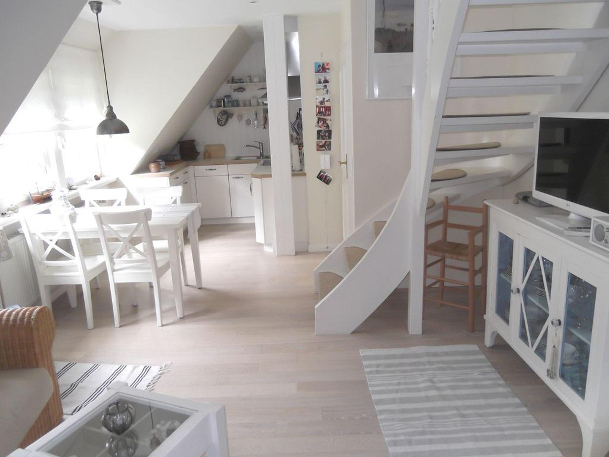 Die gemütliche und geschmackvoll eingerichtete 45 m² große Obergeschoßwohnung befindet sich in einem Mehrfamilienhaus in der Nähe vom Südstrand und bietet Platz für bis zu drei Personen. Das Objekt verfügt über ein separates Schlafzimmer mit einem Doppelbett, einer gemütlichen Wohnküche und einem Duschbad. Das zweite Doppelbett befindet sich auf der Galerie im Obergeschoss.