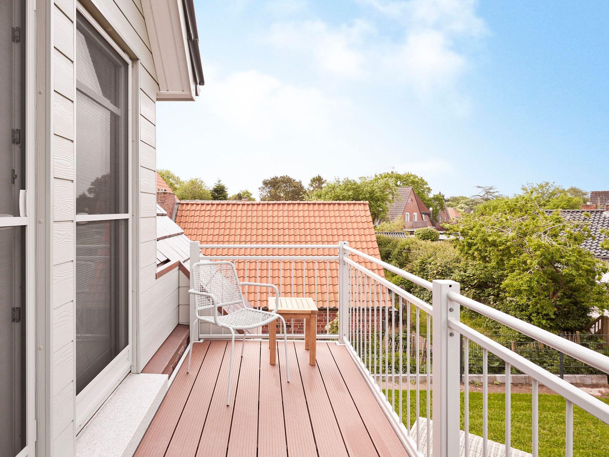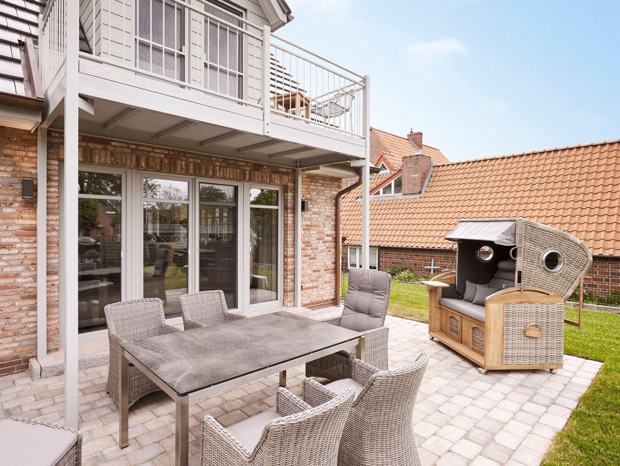 Modernes Doppelhaus Nordstern in Wyk mit Garten, Balkon und Strandnähe für entspannte Ferien zu zweit oder mit Familie.