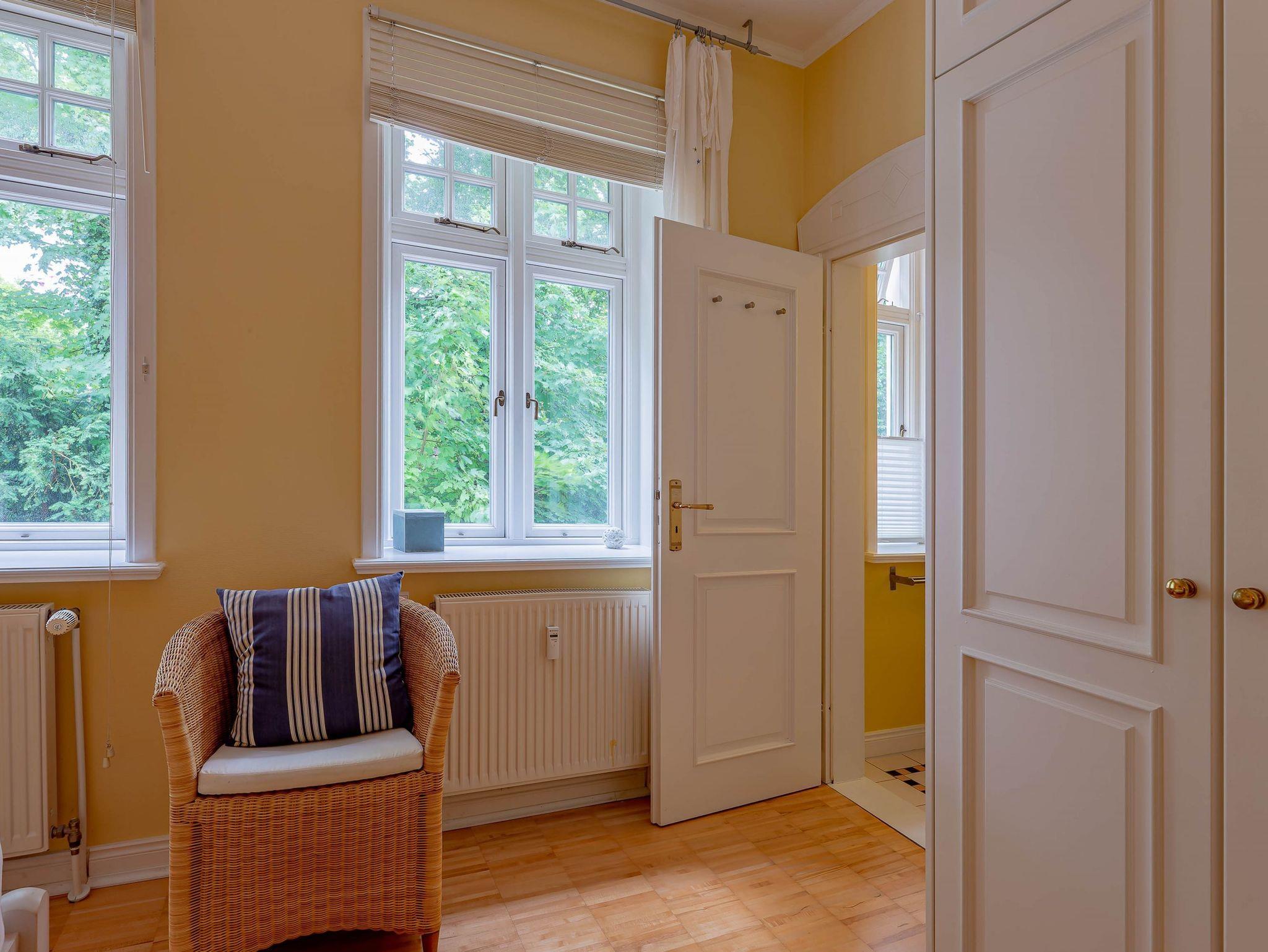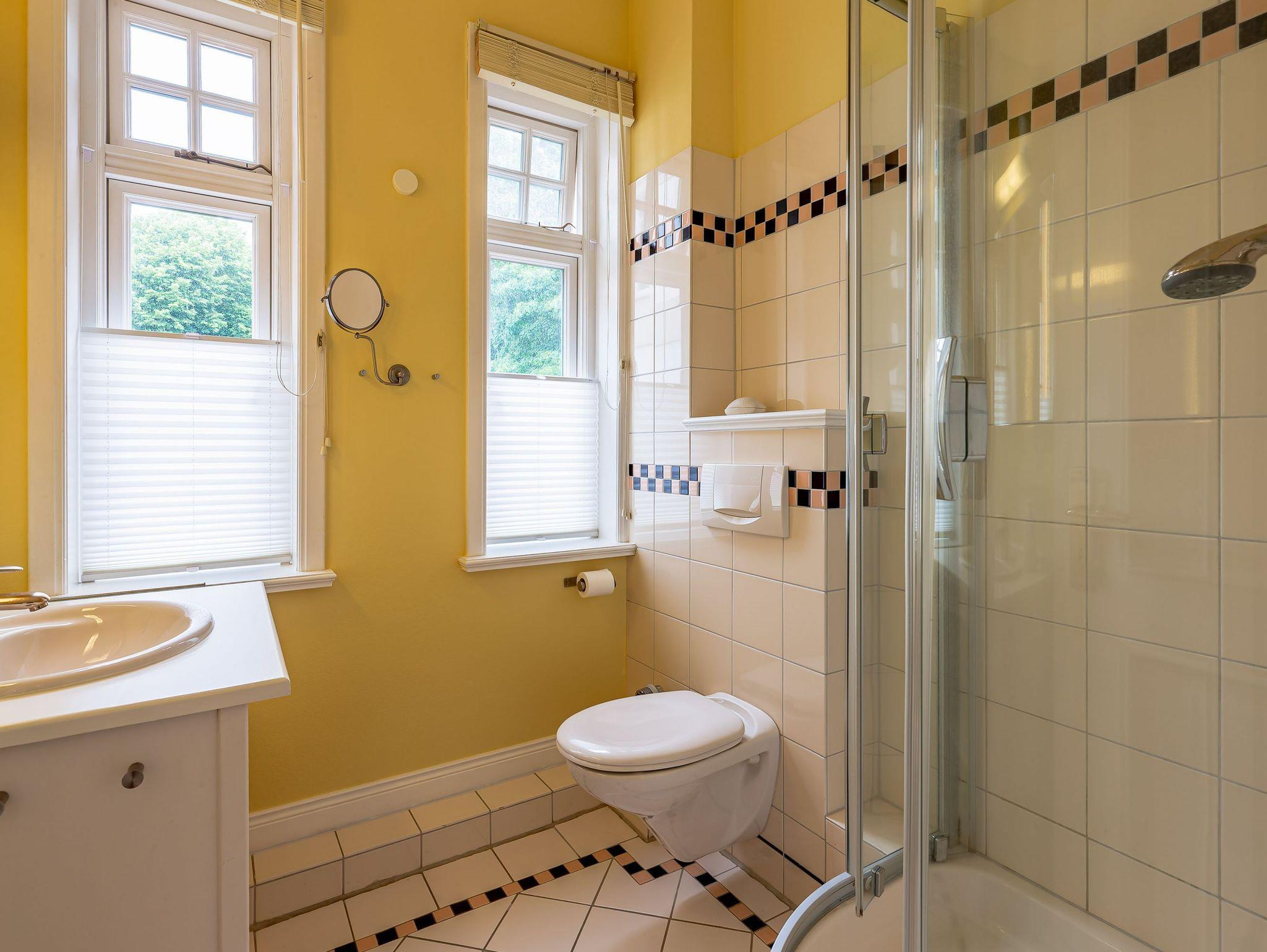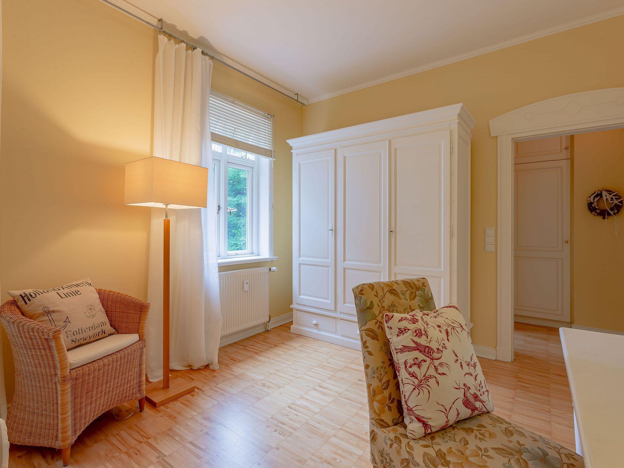 Verbringen Sie die schönste Zeit des Jahres in diesem wunderschönen Schmuckstück. Die alte Bädervilla aus dem Jahre 1910 ist ein traumhaftes Urlaubsdomizil mit bestechender Architektur und wunderbarer Lage. Die Nähe zum Wyker Südstrand und dem Nordseekurpark ist fast einmalig auf Föhr. Die Wohnung fünf liegt im Hochpaterre. Im Garten steht Ihnen ein gemeisamer Sitzplatz zur Verfügung. Die Einrichtung ist mit viel Liebe zum Detail ausgestattet. Die großen eleganten Fensterfronten und eine Raumhöhe von 2,70 mtr. in allen Zimmern bringen viel Helligkeit in die schöne Wohnung. Hier genießen Sie ihren Urlaub in vollen Zügen. Auch wenn Sie zu einem Wellnessurlaub kommen, auf Föhr gibt es viele Möglichkeiten für Physiotherapie, Massage und Kuranwendungen.