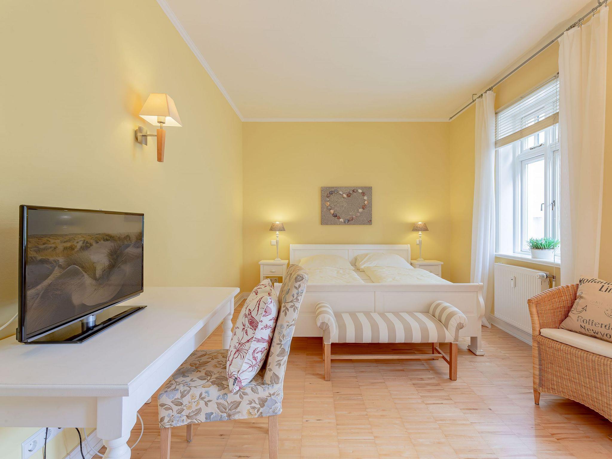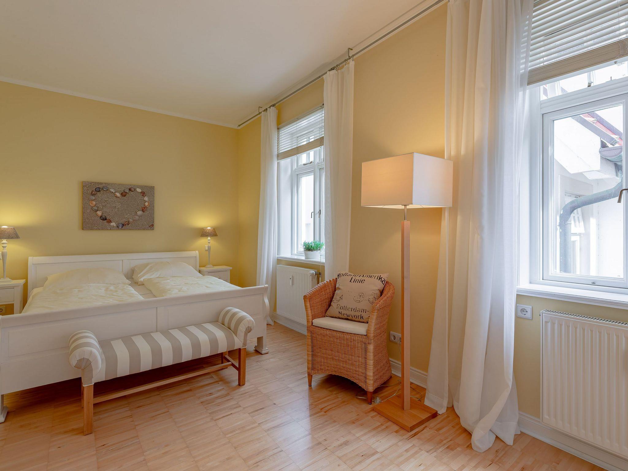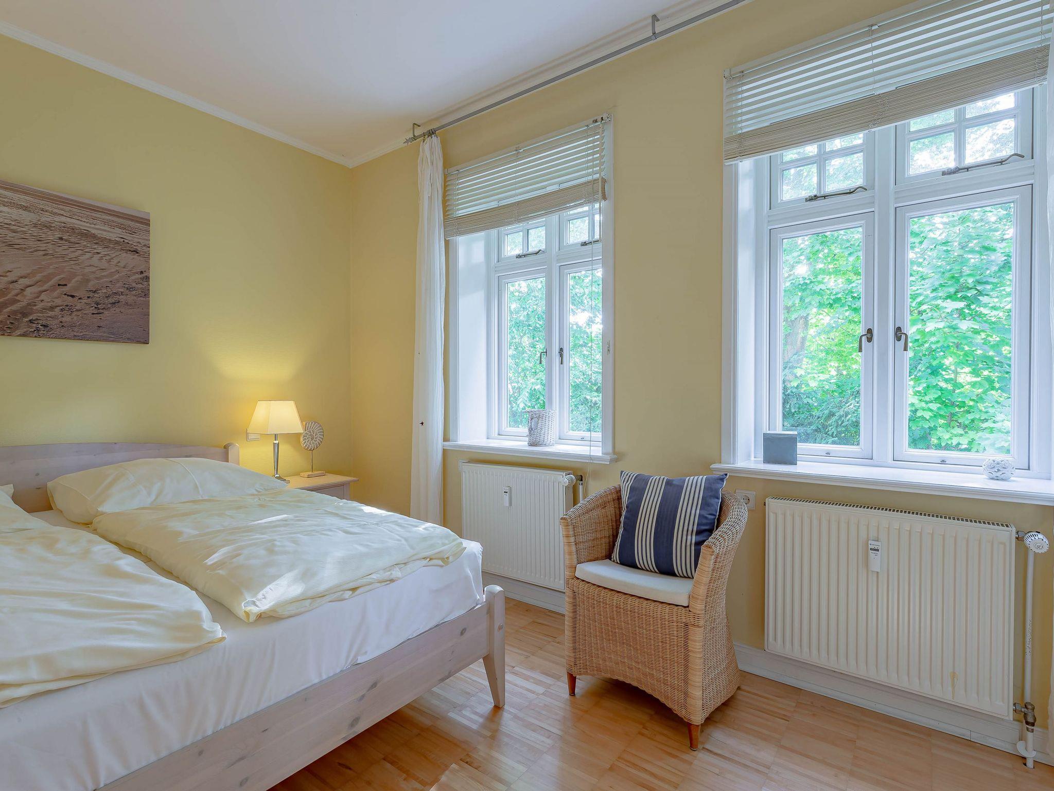 Verbringen Sie die schönste Zeit des Jahres in diesem wunderschönen Schmuckstück. Die alte Bädervilla aus dem Jahre 1910 ist ein traumhaftes Urlaubsdomizil mit bestechender Architektur und wunderbarer Lage. Die Nähe zum Wyker Südstrand und dem Nordseekurpark ist fast einmalig auf Föhr. Die Wohnung fünf liegt im Hochpaterre. Im Garten steht Ihnen ein gemeisamer Sitzplatz zur Verfügung. Die Einrichtung ist mit viel Liebe zum Detail ausgestattet. Die großen eleganten Fensterfronten und eine Raumhöhe von 2,70 mtr. in allen Zimmern bringen viel Helligkeit in die schöne Wohnung. Hier genießen Sie ihren Urlaub in vollen Zügen. Auch wenn Sie zu einem Wellnessurlaub kommen, auf Föhr gibt es viele Möglichkeiten für Physiotherapie, Massage und Kuranwendungen.