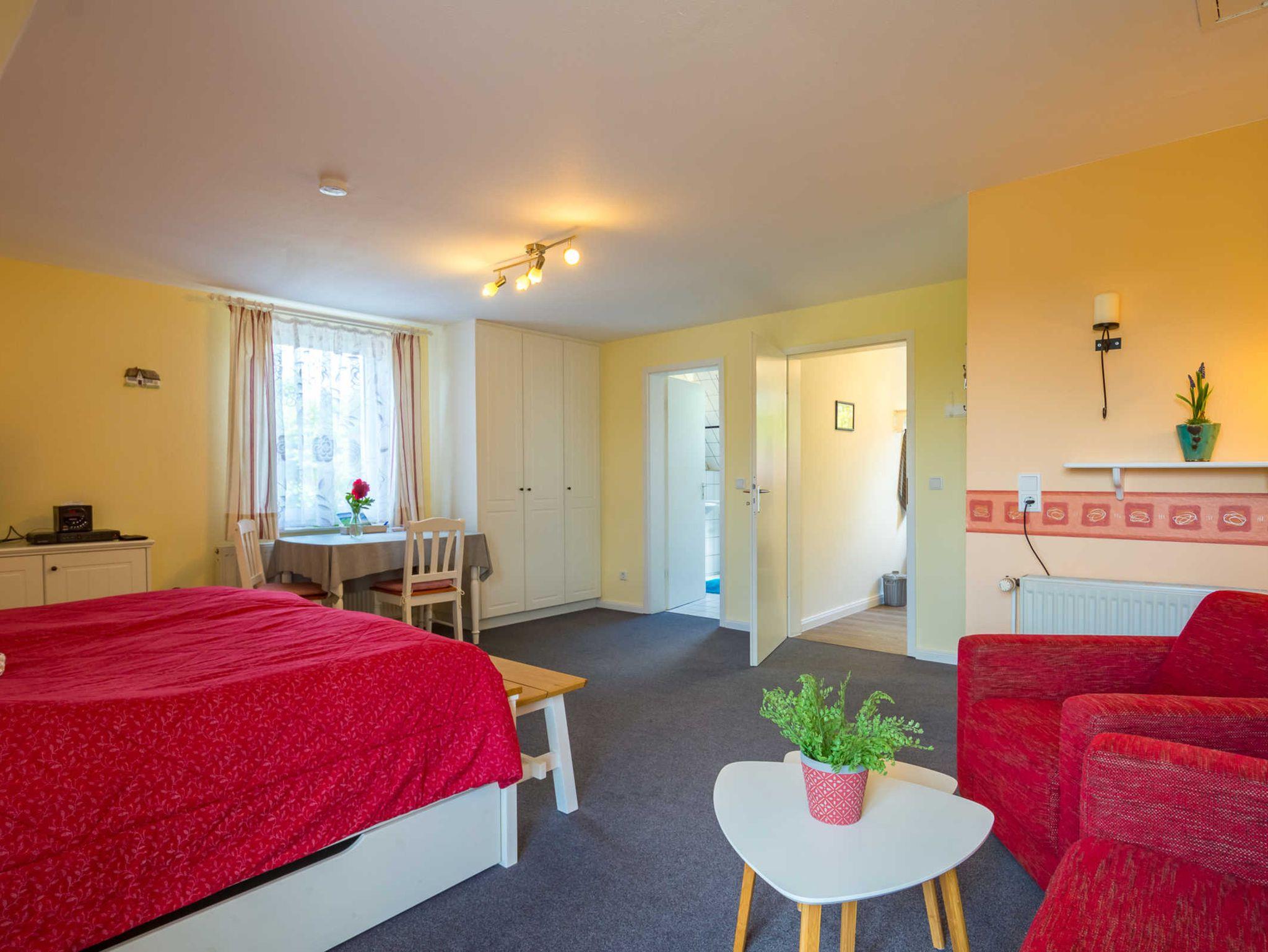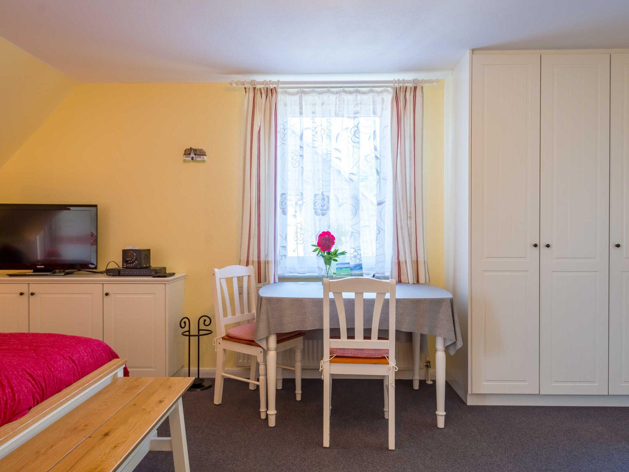 Die Wohnung für zwei Personen mit zirka 40 qm und einem kleinen Balkon, hell und gemütlich eingerichtet, ist nach Süd-Süd-West ausgerichtet. Endreinigung, Verbrauchskosten, Kabel-TV, W-LAN, Bettwäsche und Handtücher sind inklusive. Durch die separate Küche bietet die Unterkunft für ein Einzimmerappartement viel Platz im kombinierten Wohn- und Schlafbereich.