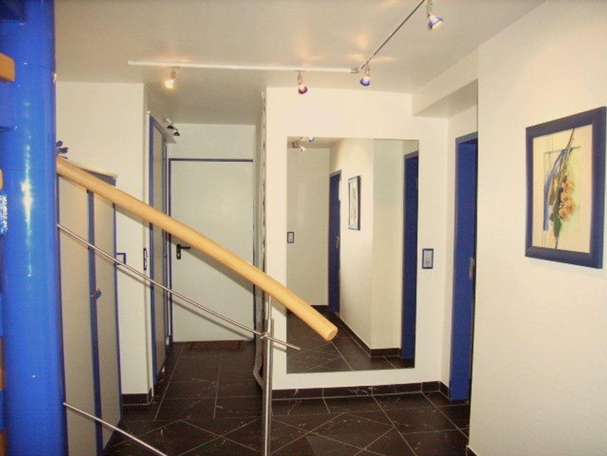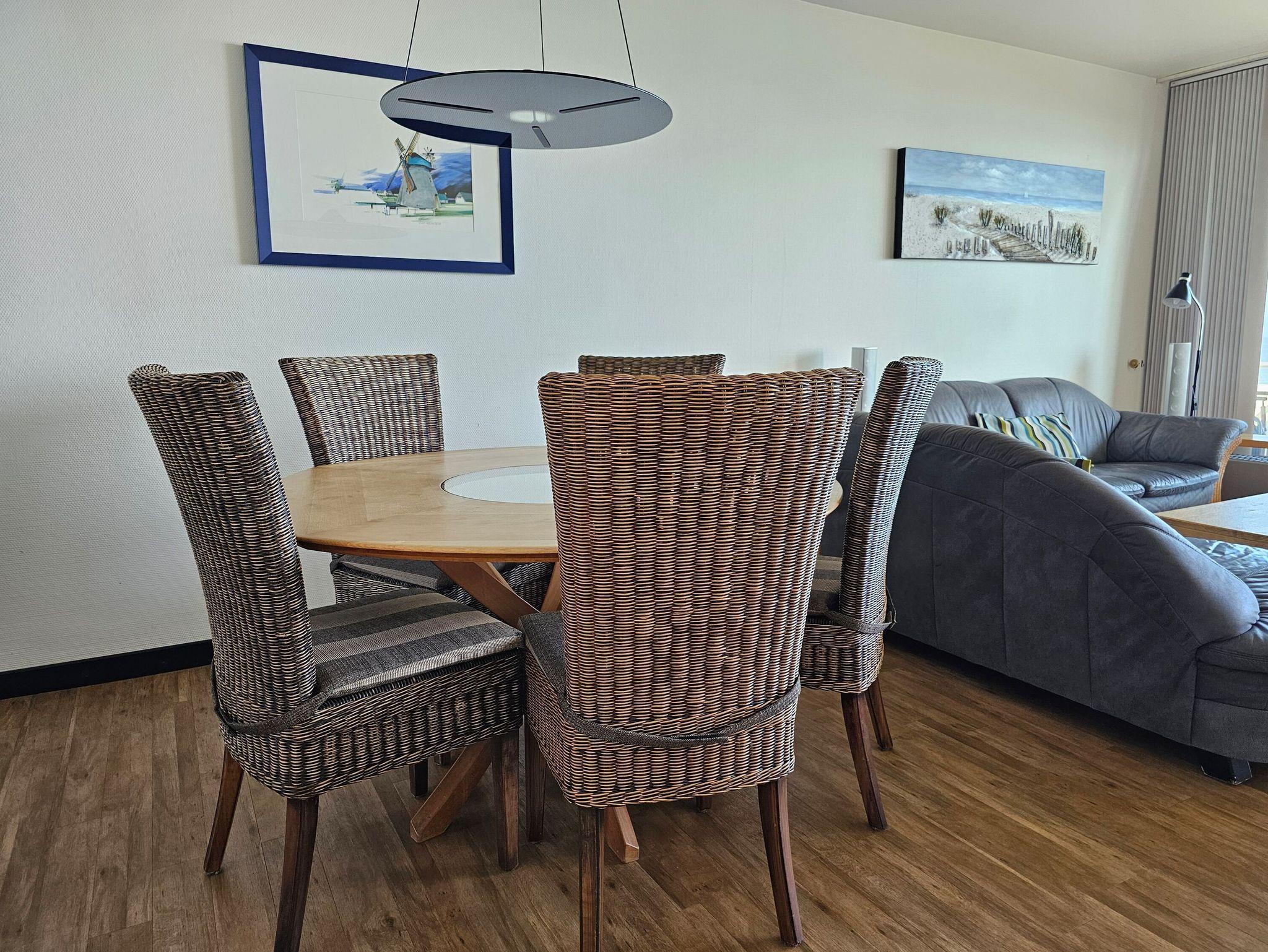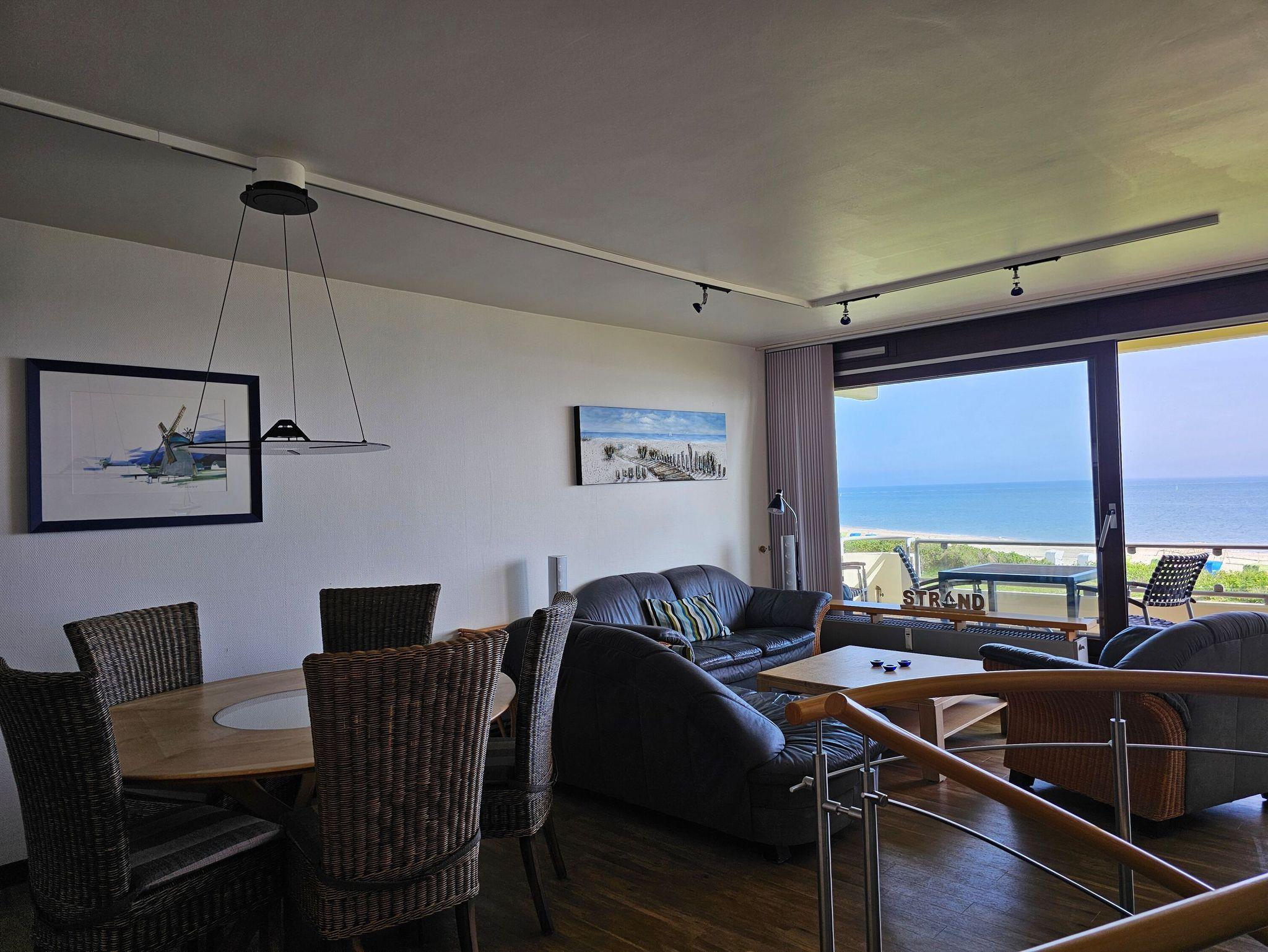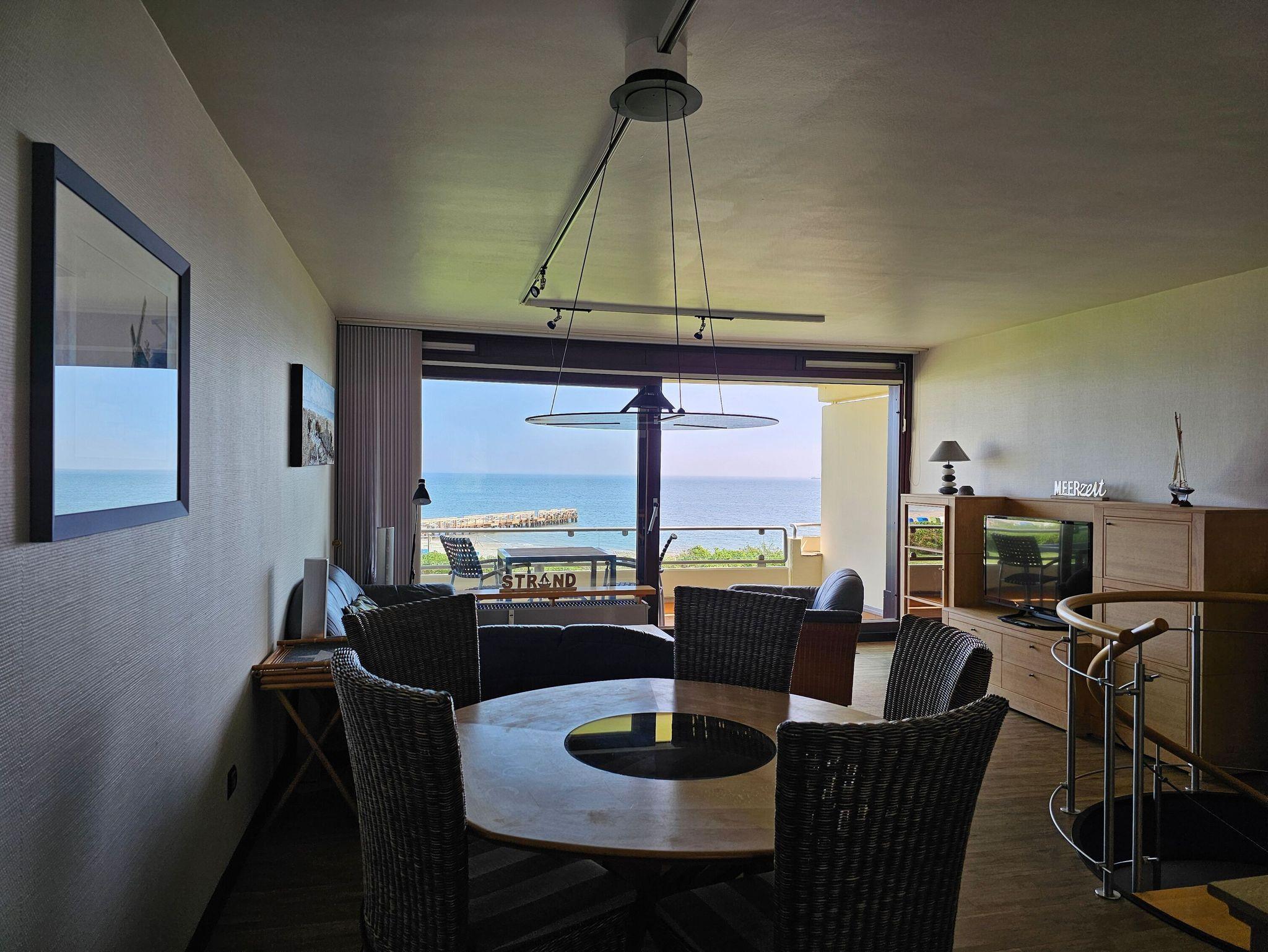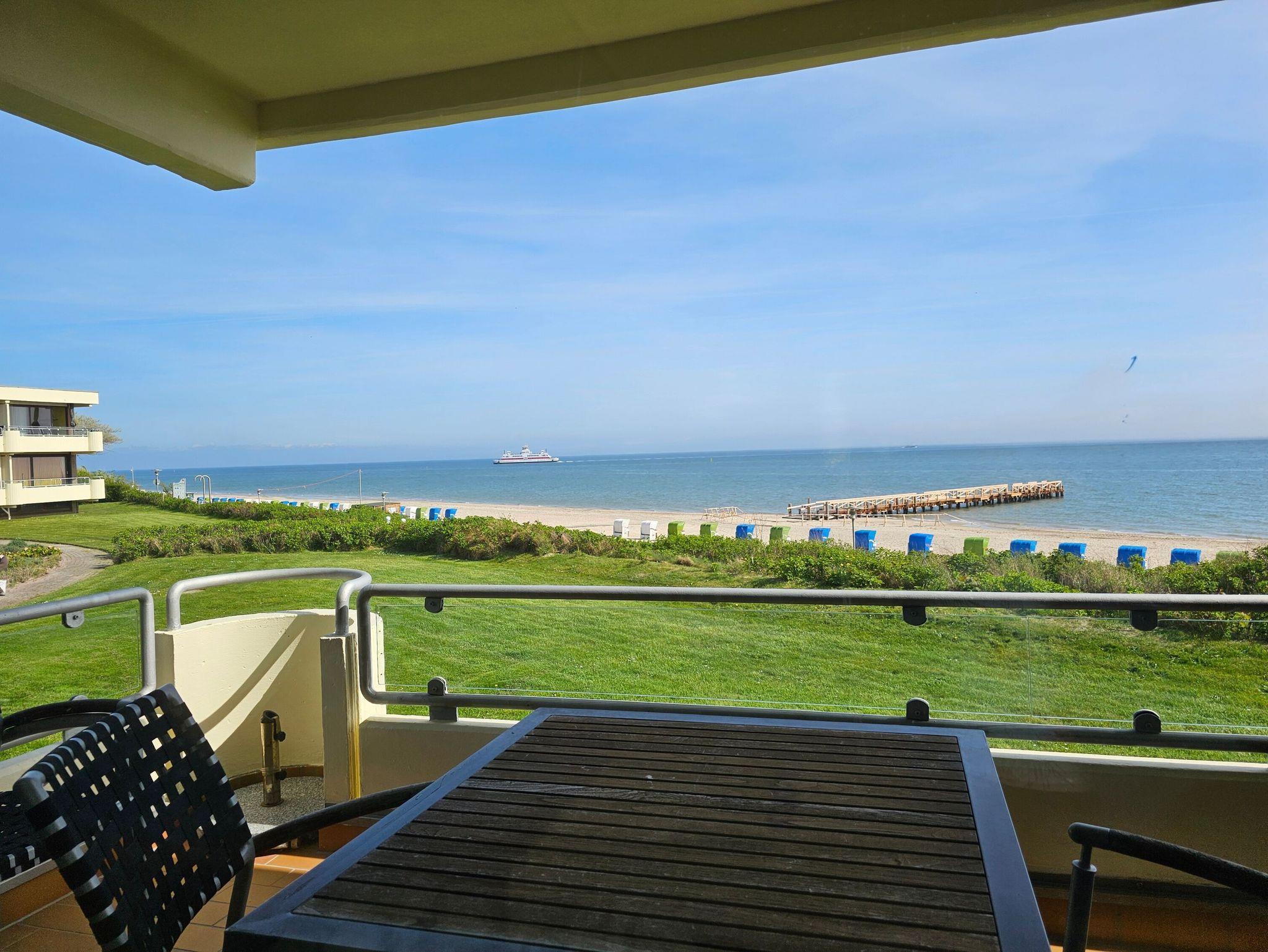 Moderne Ferienwohnung mit Meerblick, Balkon und Schwimmbad in Wyk auf Föhr, ideal für einen erholsamen Urlaub.