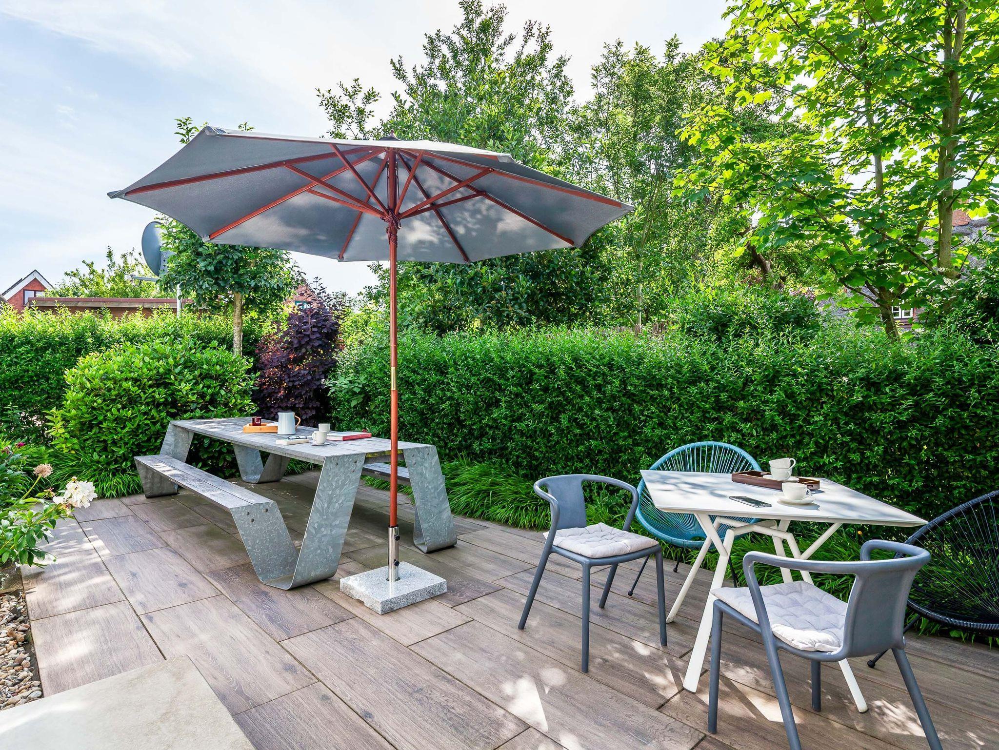Der eingewachsenen Garten mit Mobiliar sowie ein Parkplatz und ein Schuppen stehen für Sie zur Nutzung bereit.
