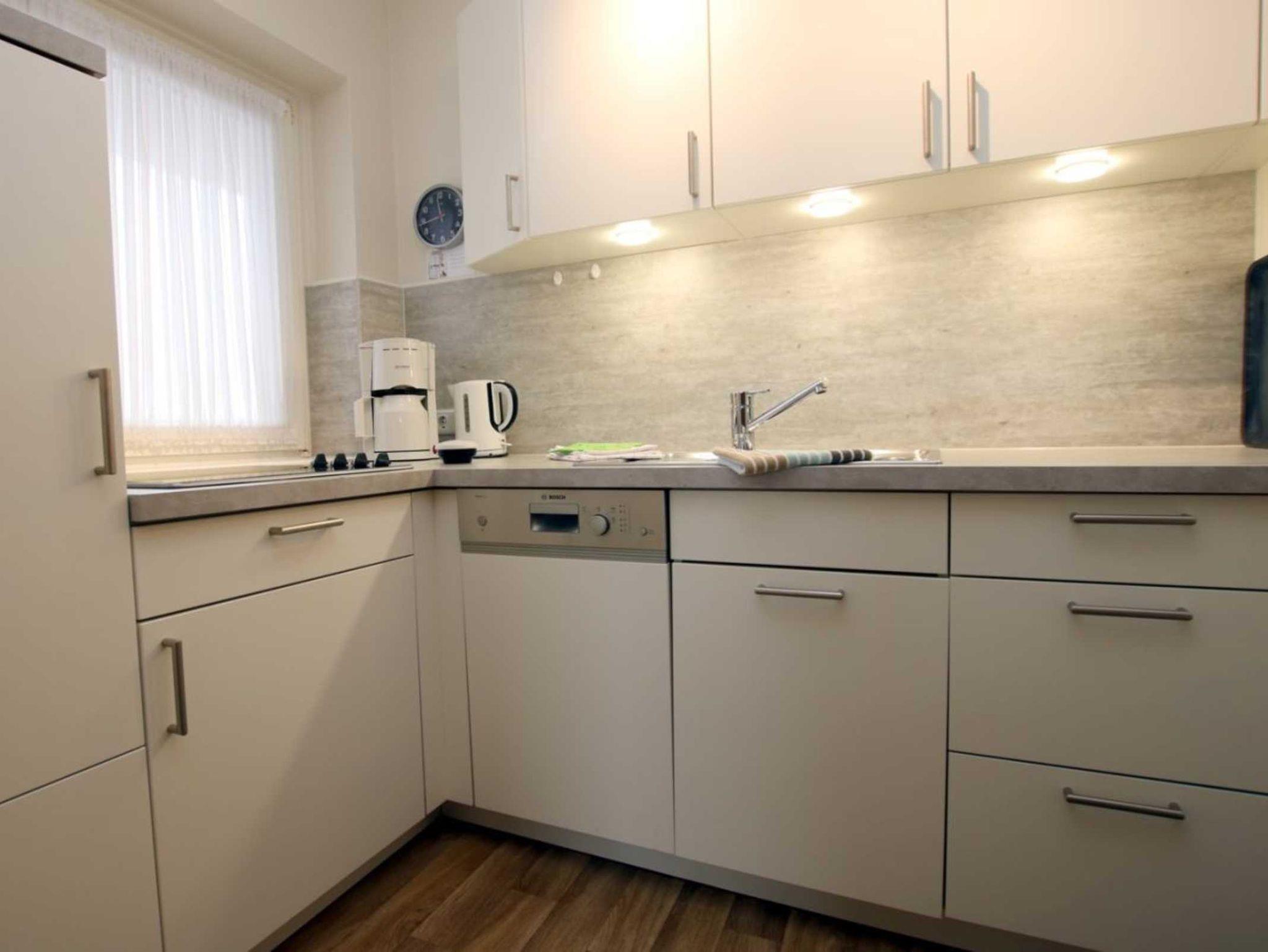Küche / Haushalt: Backofen mit Ceranfeld, Filterkaffeemaschine, Geschirrspüler, Wasserkocher.