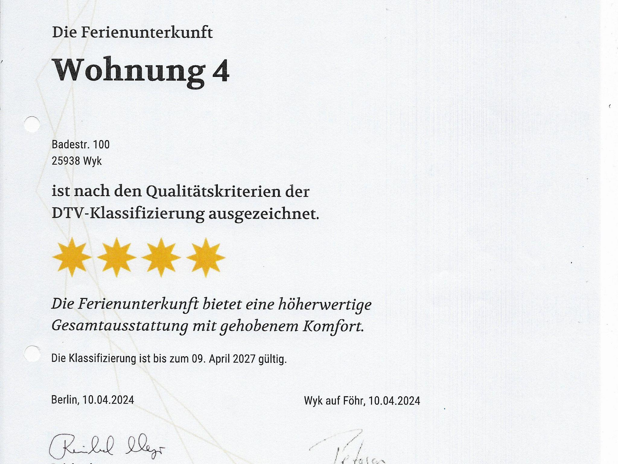 Die Ferienunterkunft wurde nach den Qulaitätskriterien der DTV-Klassifizierung mit 4 Sternen ausgezeichnet.