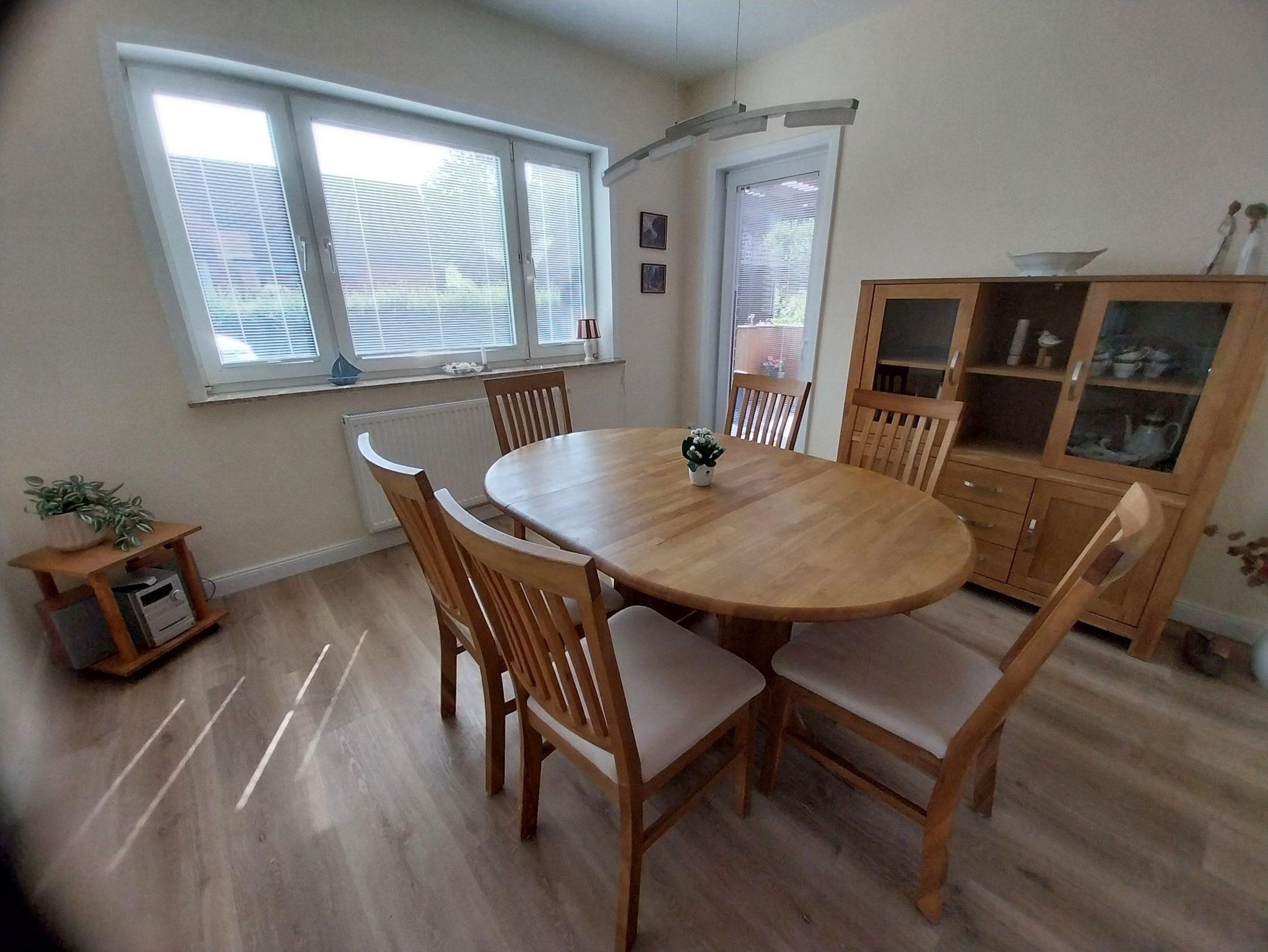 Gemütliches Ferienhaus mit großem Garten und Terrasse lädt zum Entspannen ein. In 90 qm Wohnfläche befinden sich im Erdgeschoss ein großes Wohn/Esszimmer, Flur, Küche und ein Duschbad. In der oberen Etage sind Elternzimmer(Doppelbett 1,80 x 2,00 m) Kinderzimmer(Boxspringbett 1,40 x 2,00 m) sowie ein weiteres Gäste-WC.